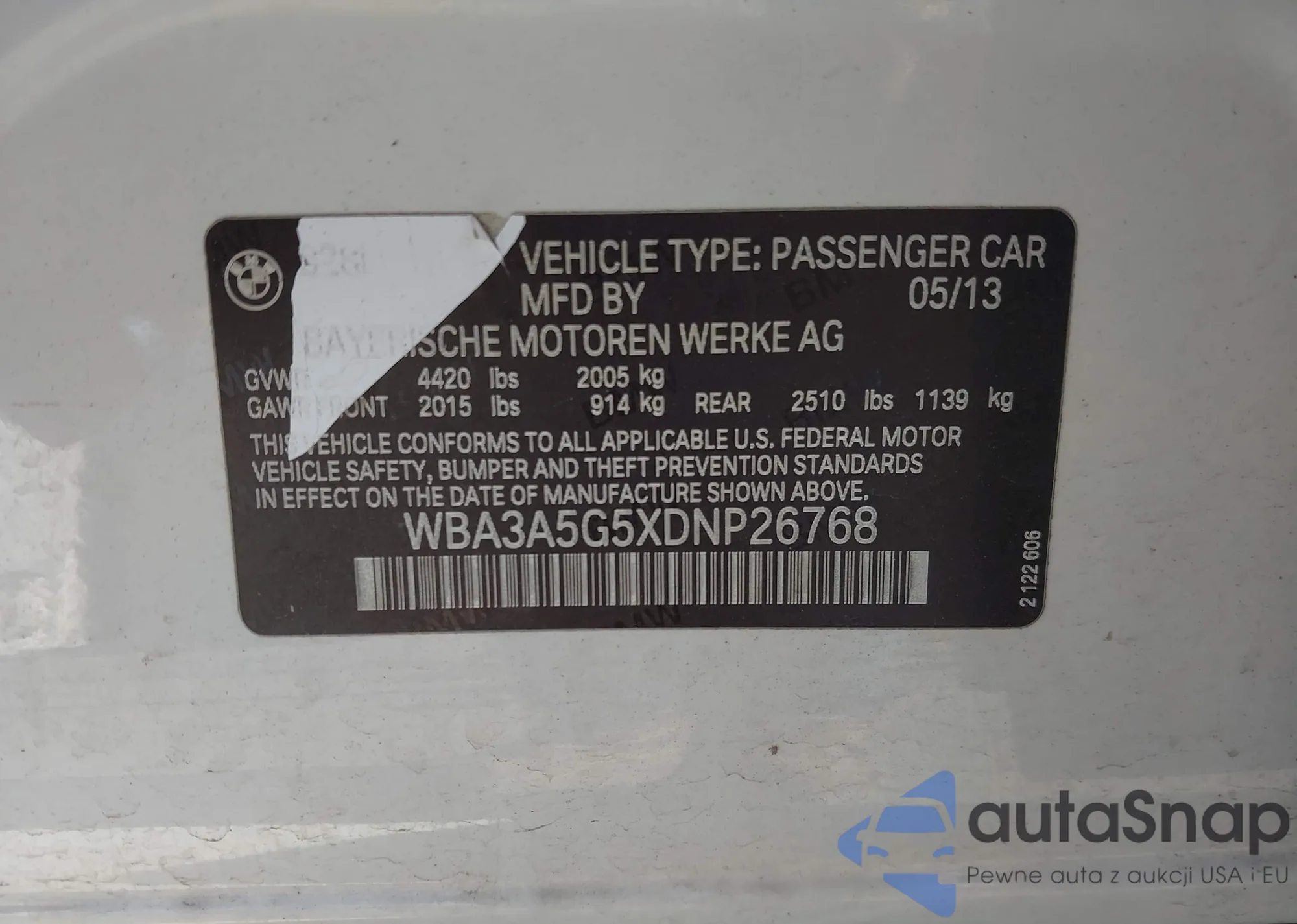 • VIN WBA3A5G5XDNP26768