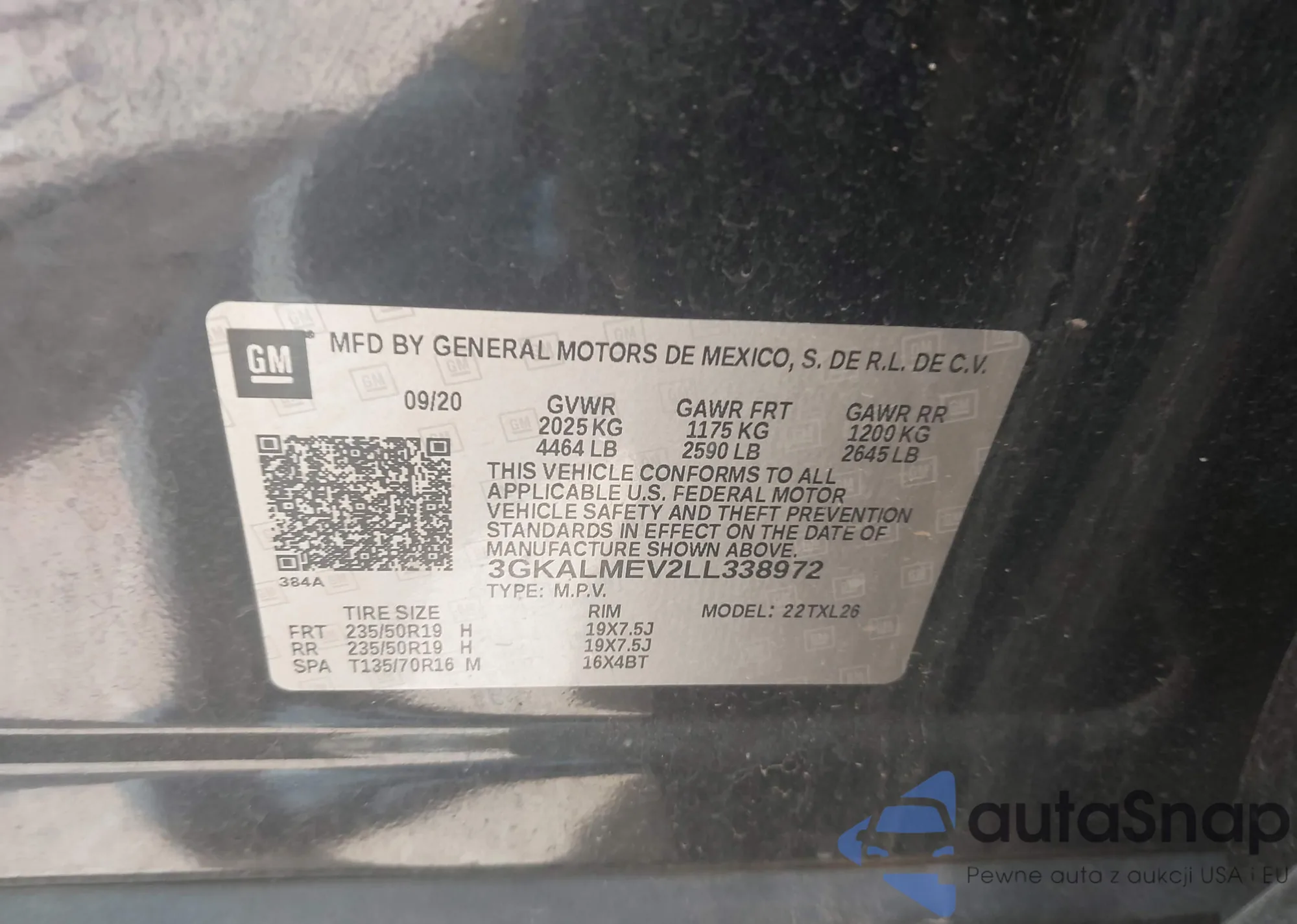 LOT: 42796684 VIN: 3GKALMEV2LL338972