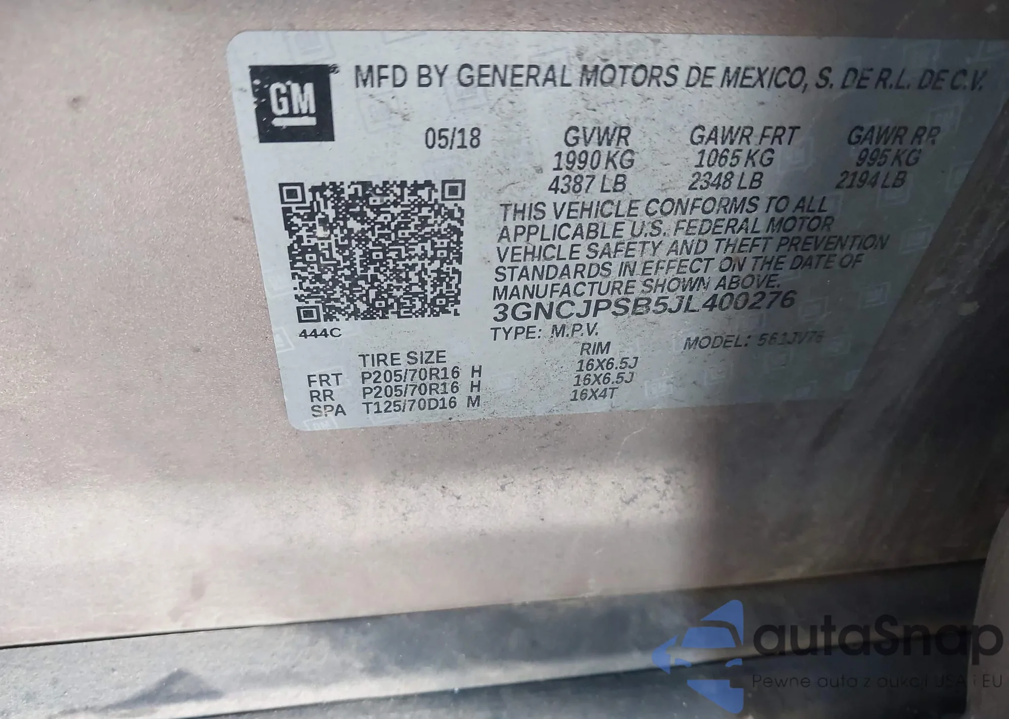 • VIN 3GNCJPSB5JL400276
