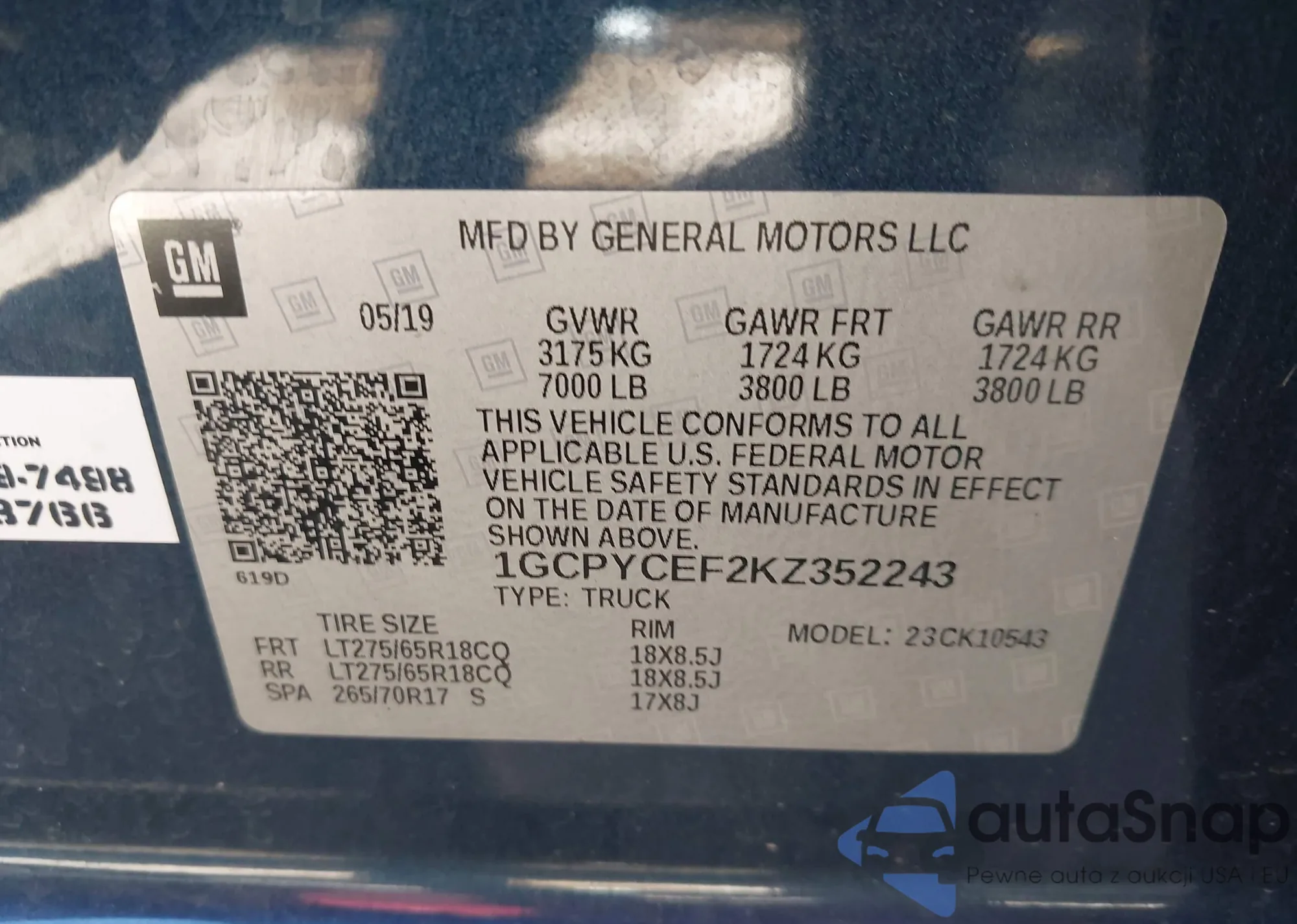 LOT: 43803850 VIN: 1GCPYCEF2KZ352243