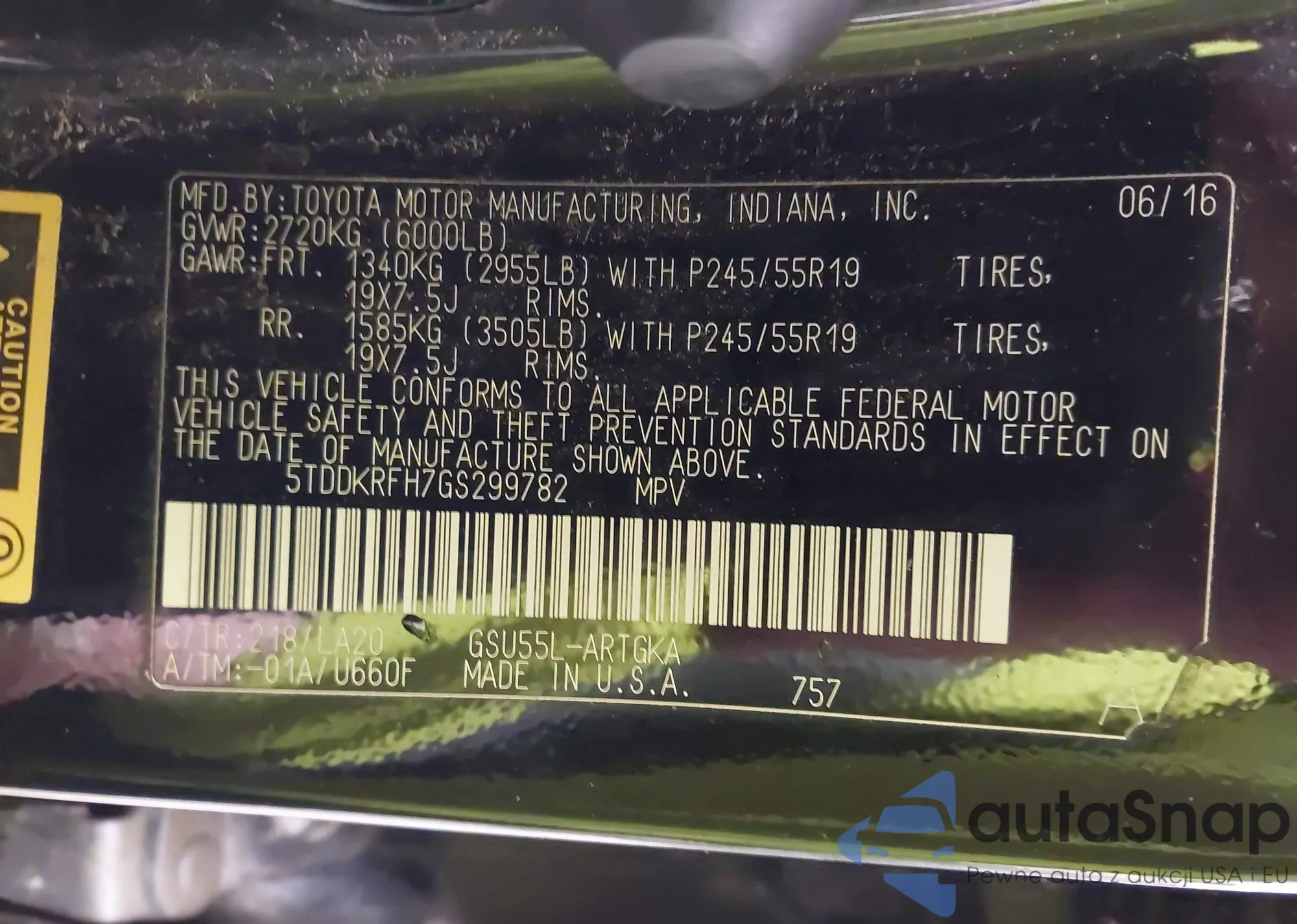 LOT: 43052883 VIN: 5N1AT2MV1GC736706