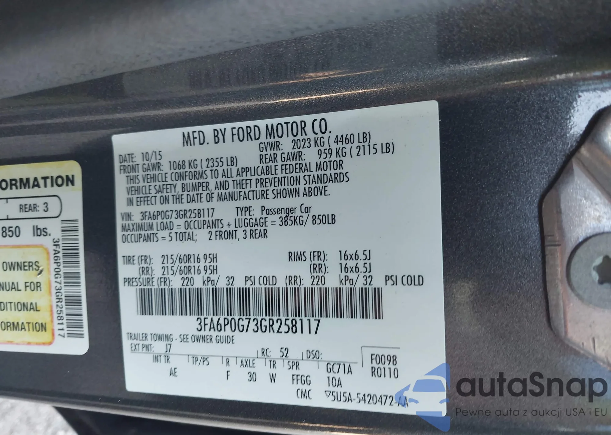 • VIN 2FMPK4J85HBC66673