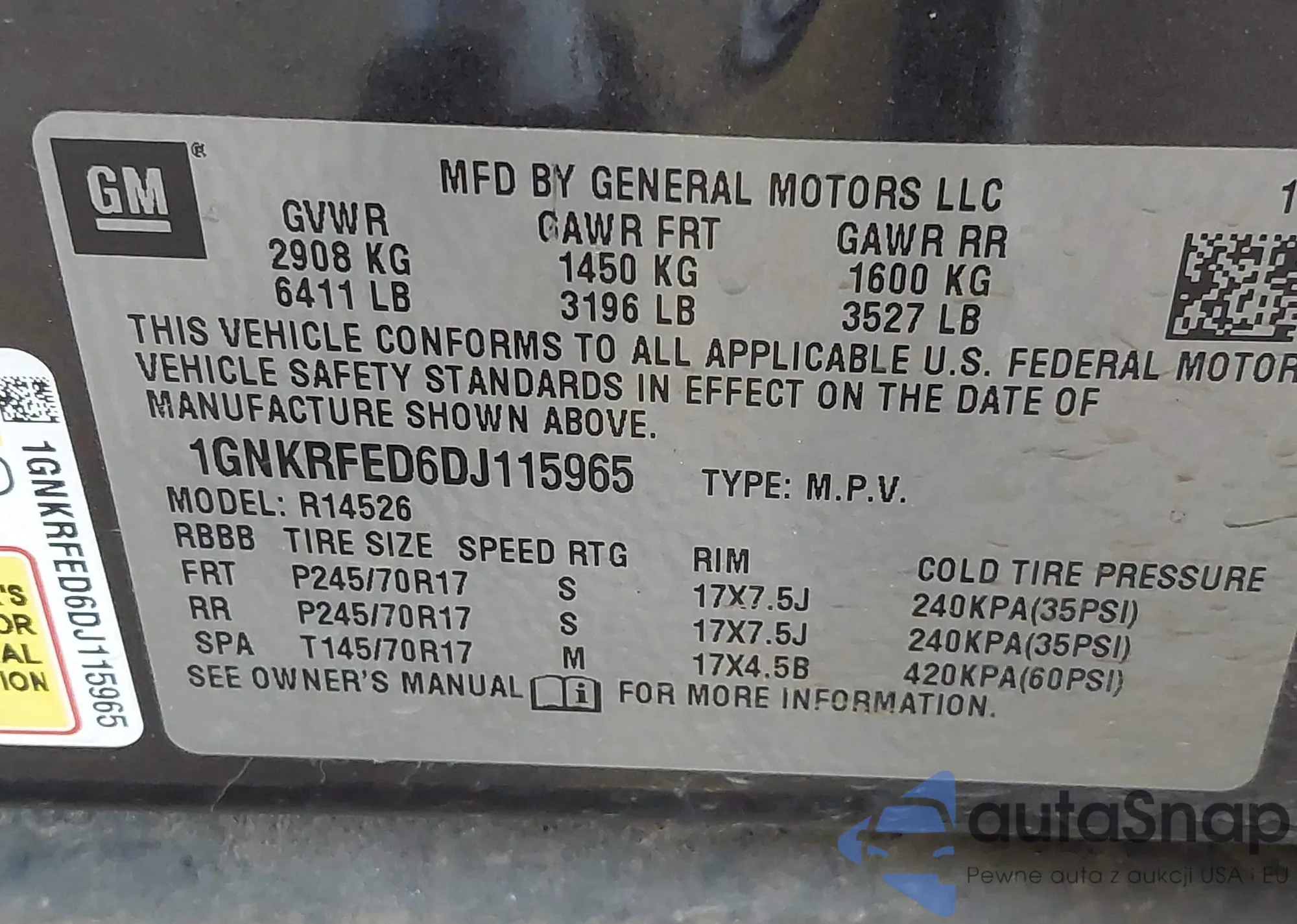 • VIN 5FPYK3F75KB007587