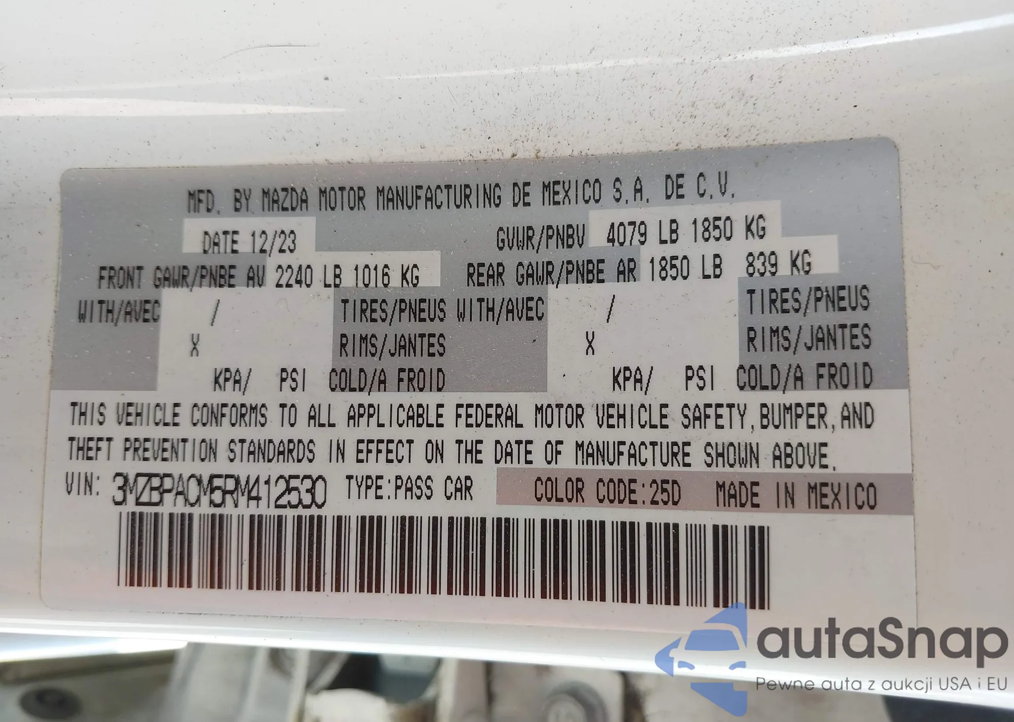 LOT: 43383632 VIN: 3MZBPACM5RM412530