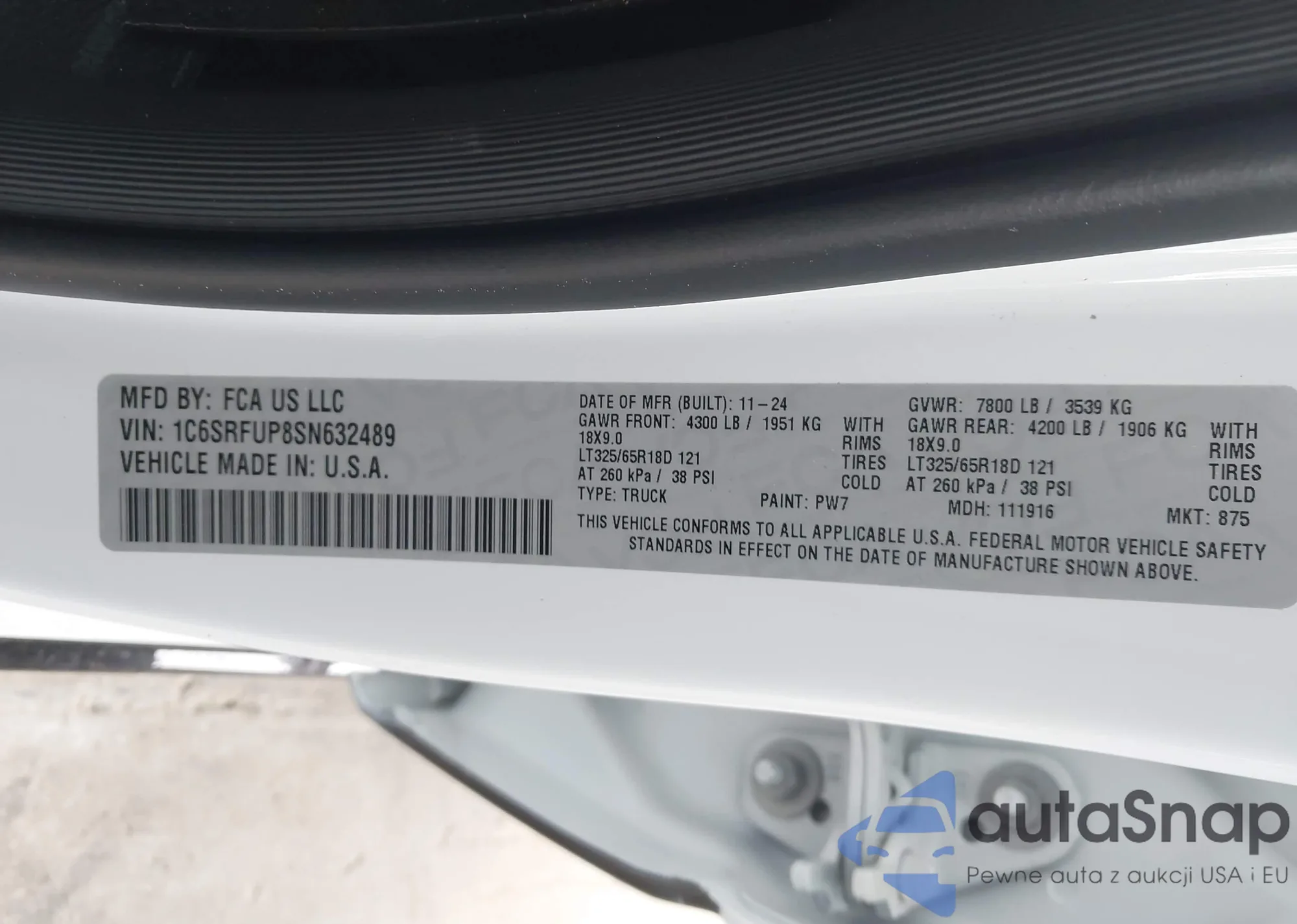 • VIN 1C6SRFUP8SN632489