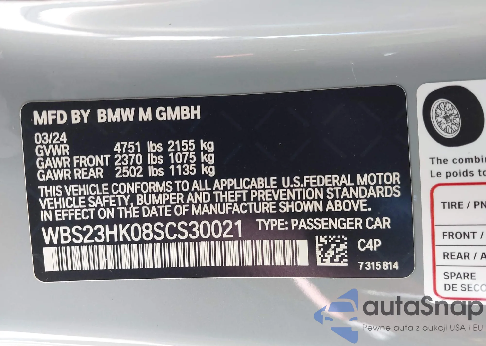 LOT: 43466037 VIN: WBS23HK08SCS30021