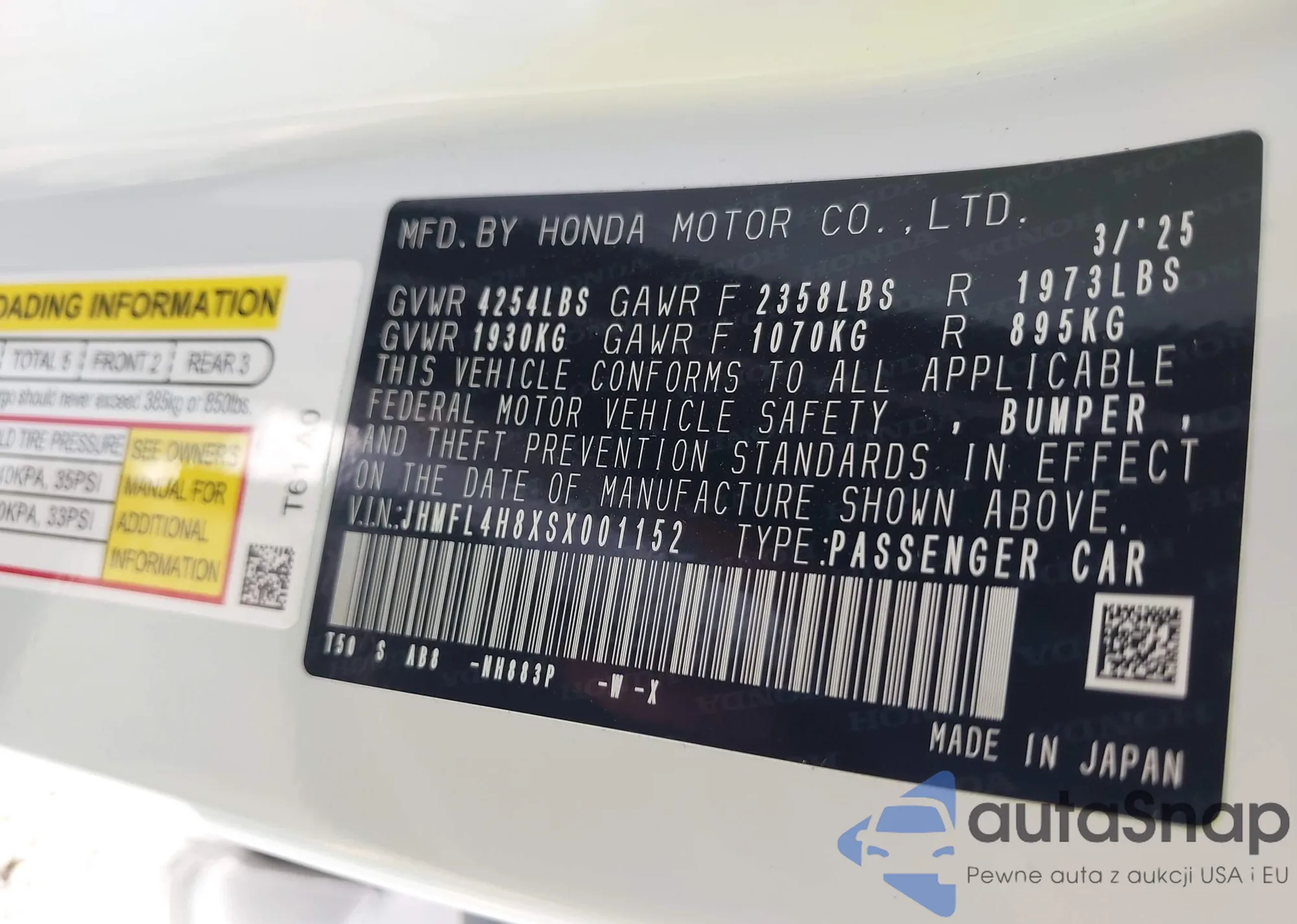 • VIN JHMFL4H8XSX001152