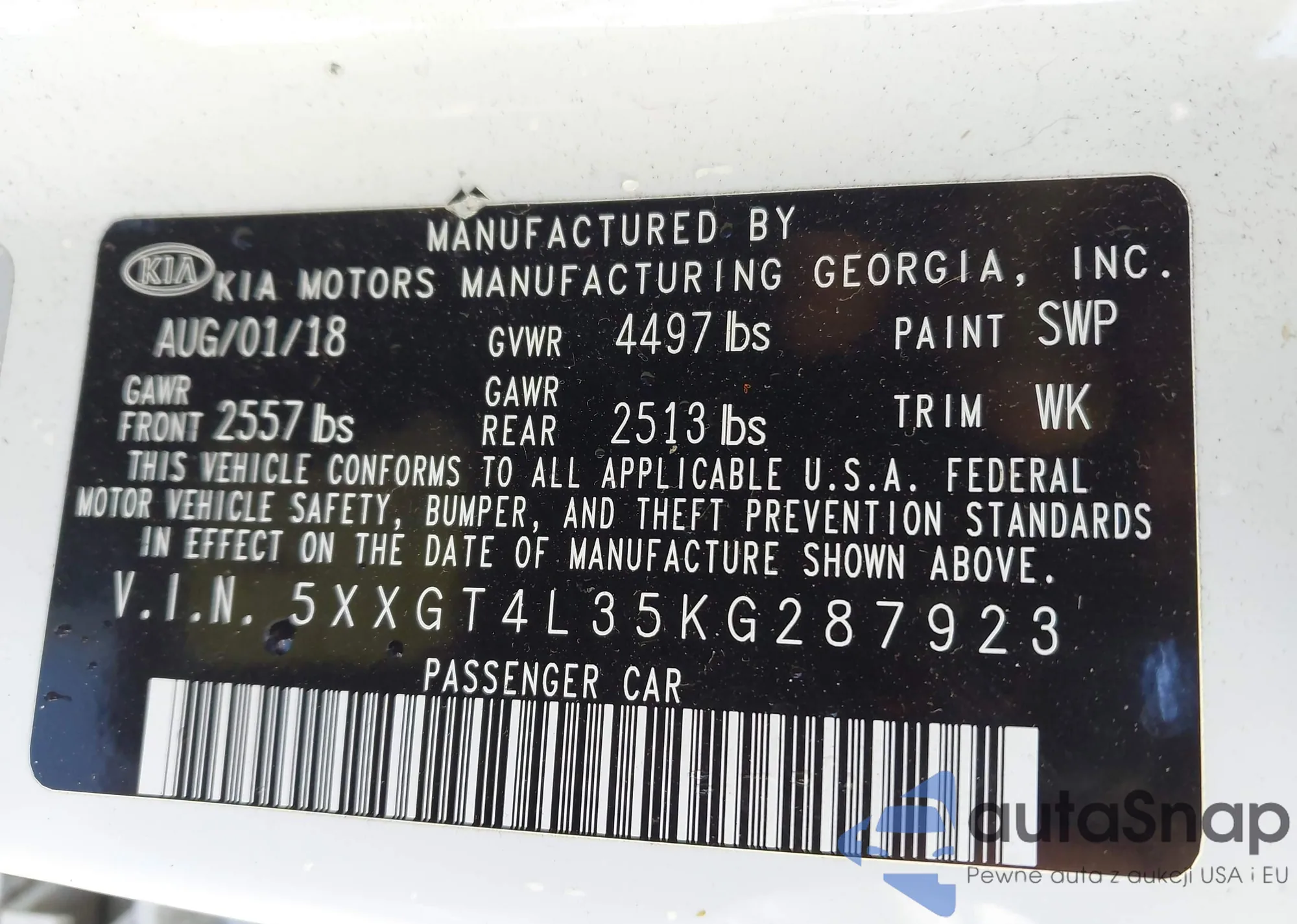• VIN 5XXGT4L35KG287923