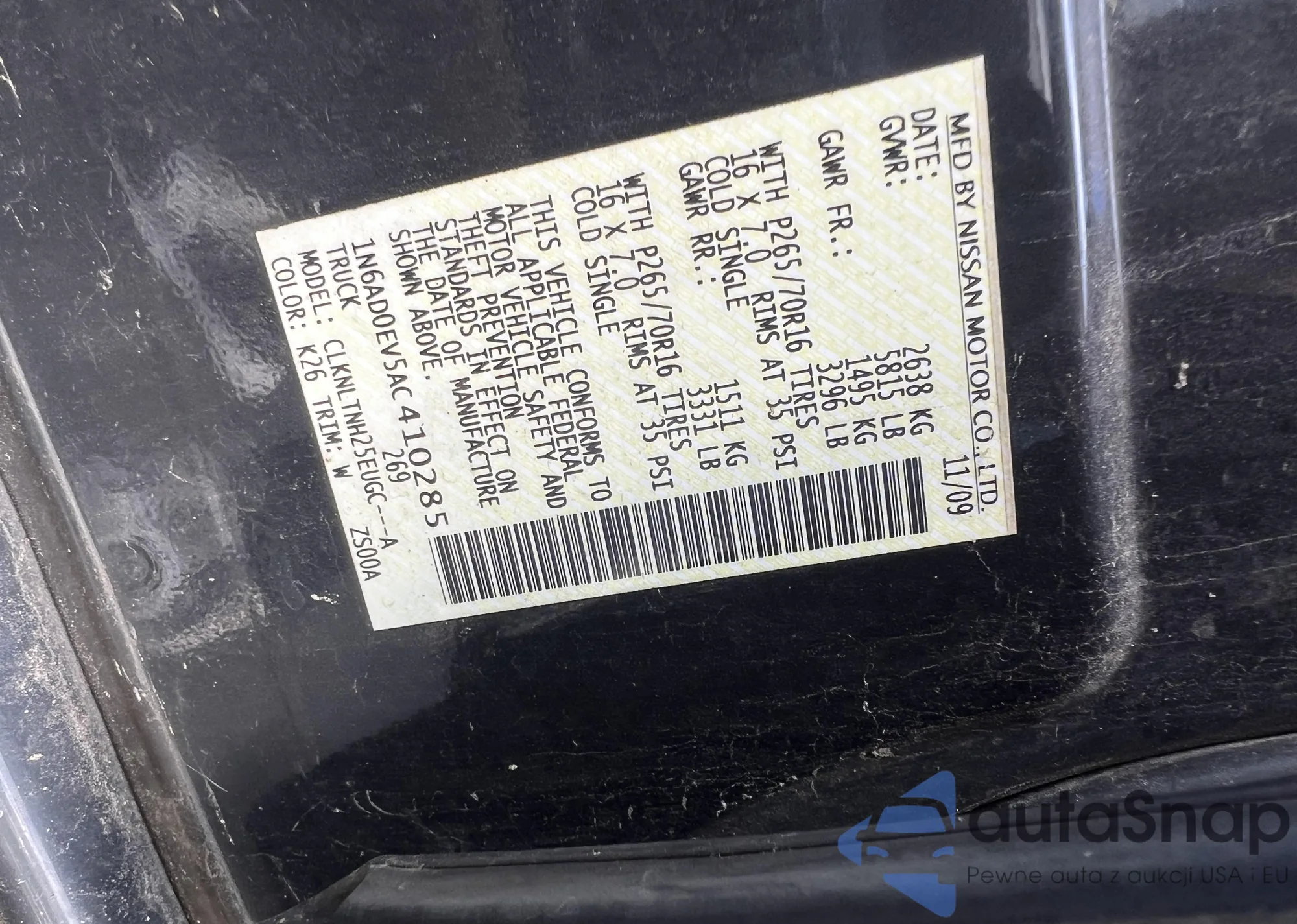 • VIN 5N1AR2MN7DC615608