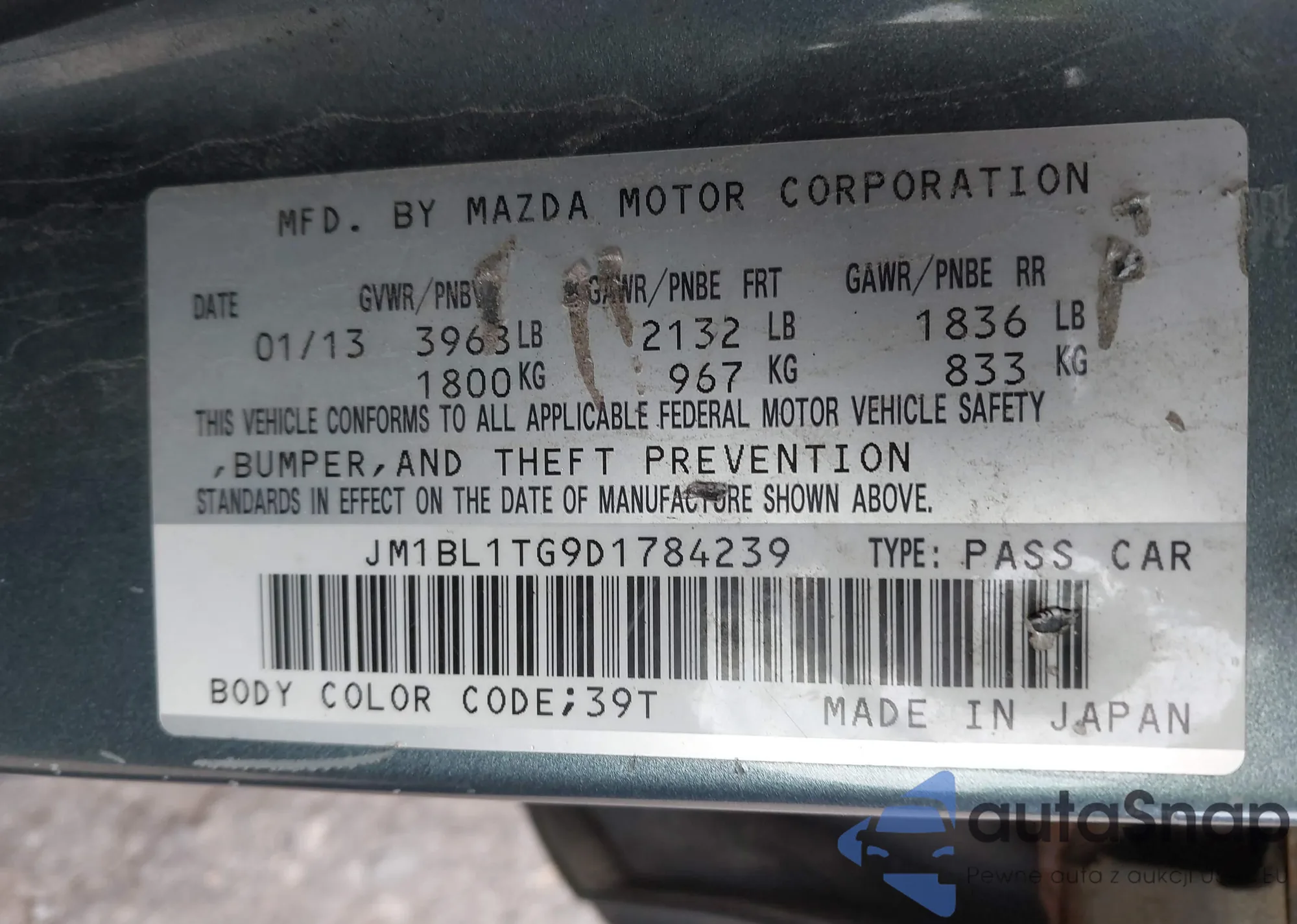 LOT: 43647903 VIN: JM1BL1TG9D1784239