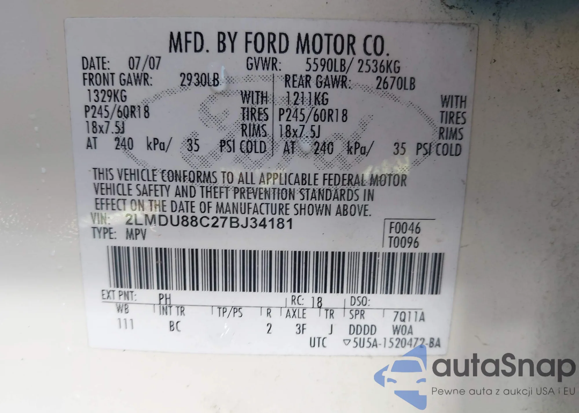 • VIN 2LMDU88C27BJ34181