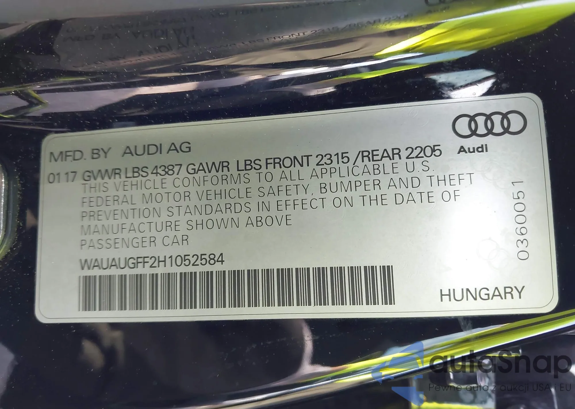 • VIN 4T1BF1FK3HU293463