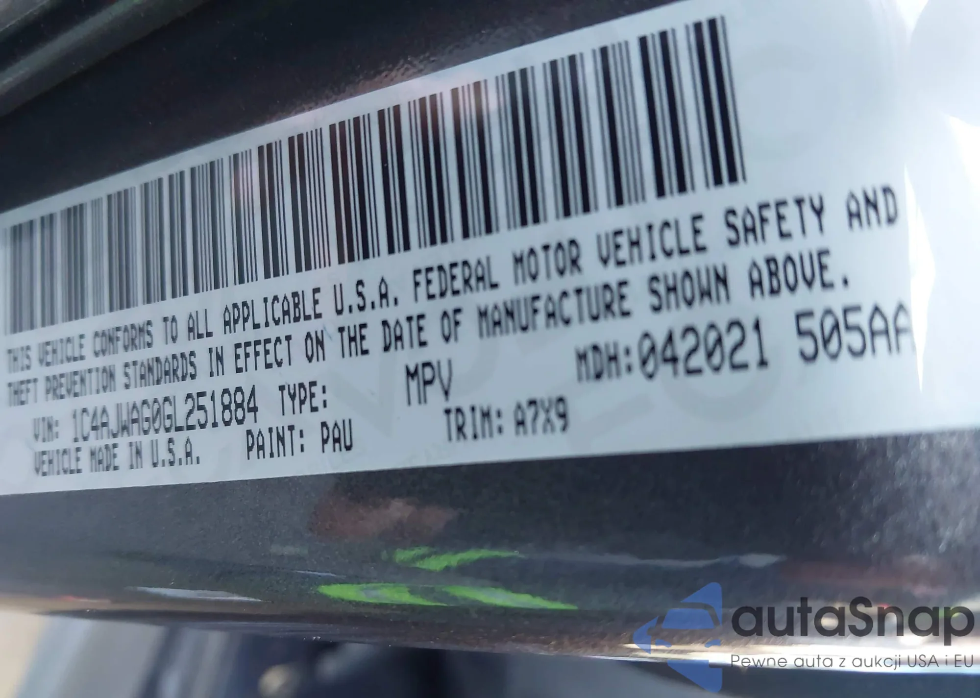 • VIN 1C4AJWAG0GL251884