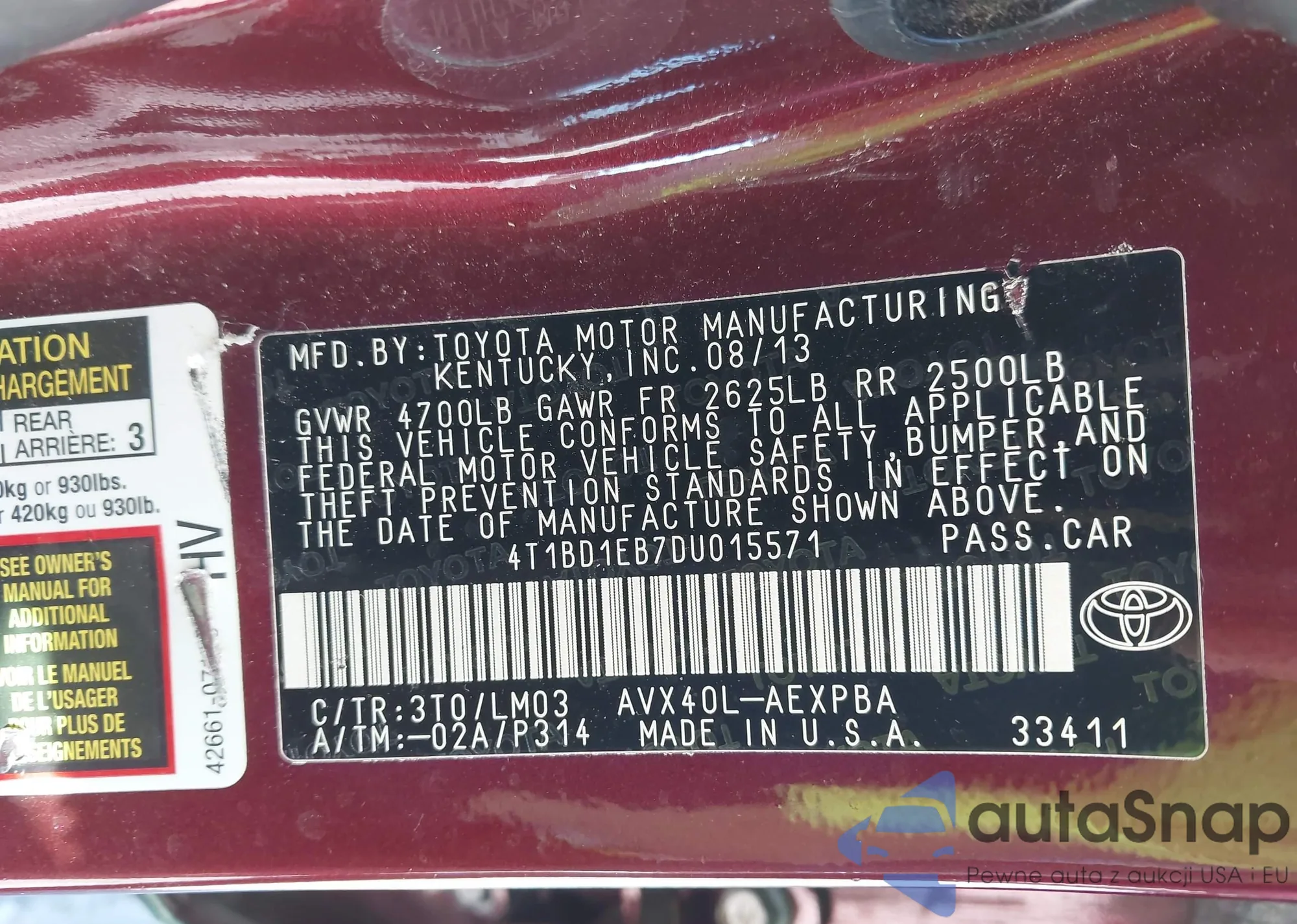 • VIN 4T1BD1EB7DU015571