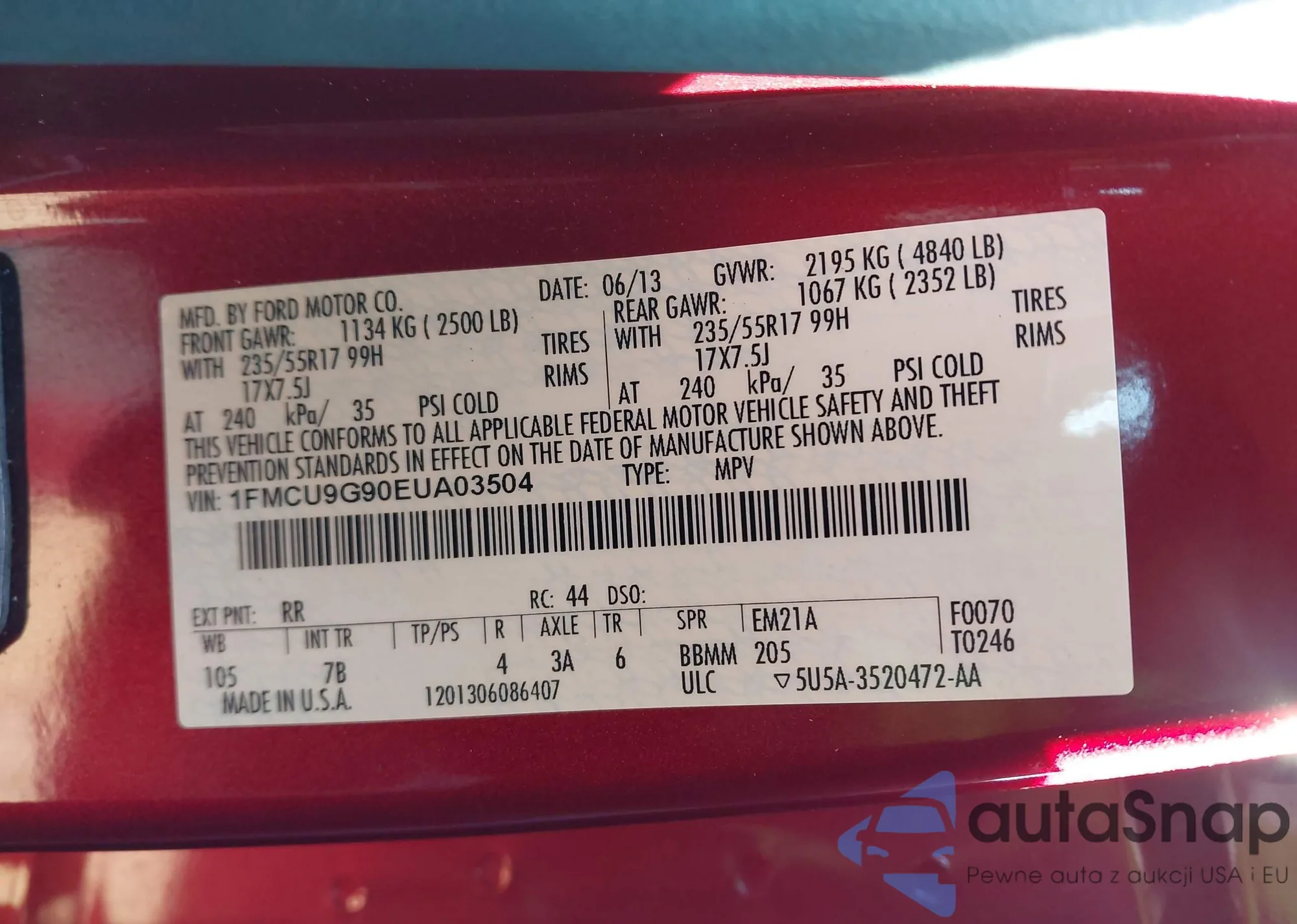 • VIN 4T1DAACK6SU120183