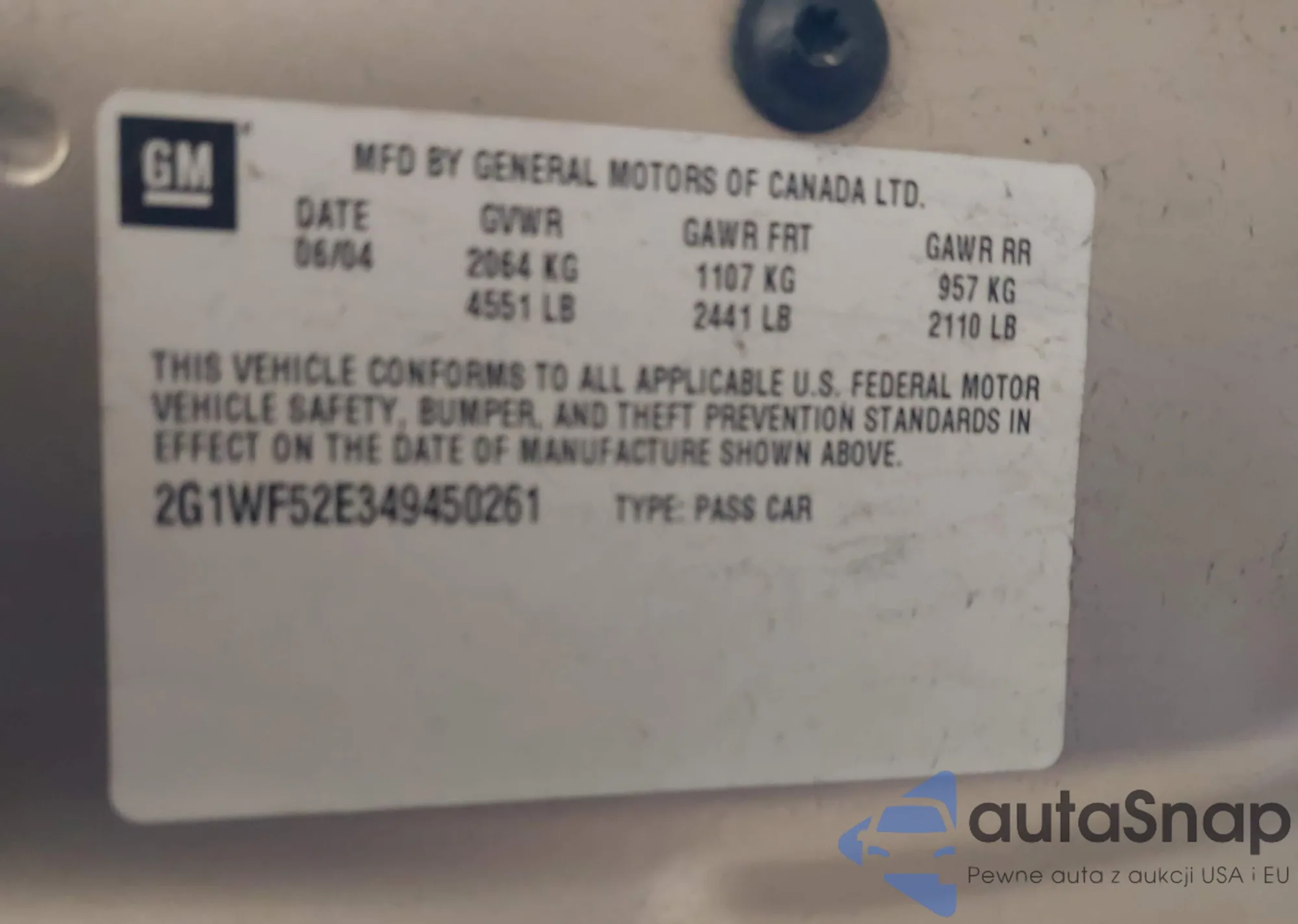 • VIN 2G1WF52E349450261