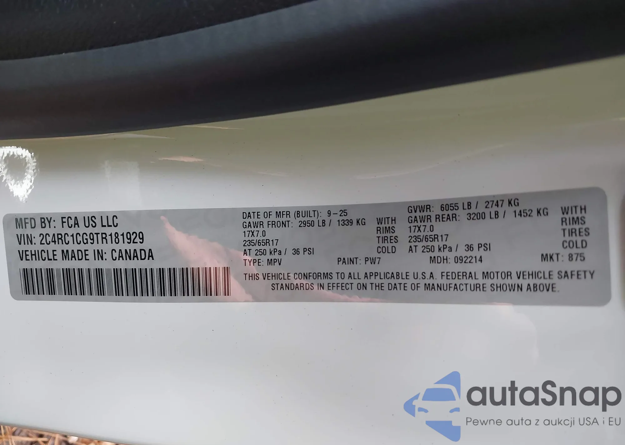 • VIN 2C4RC1CG9TR181929