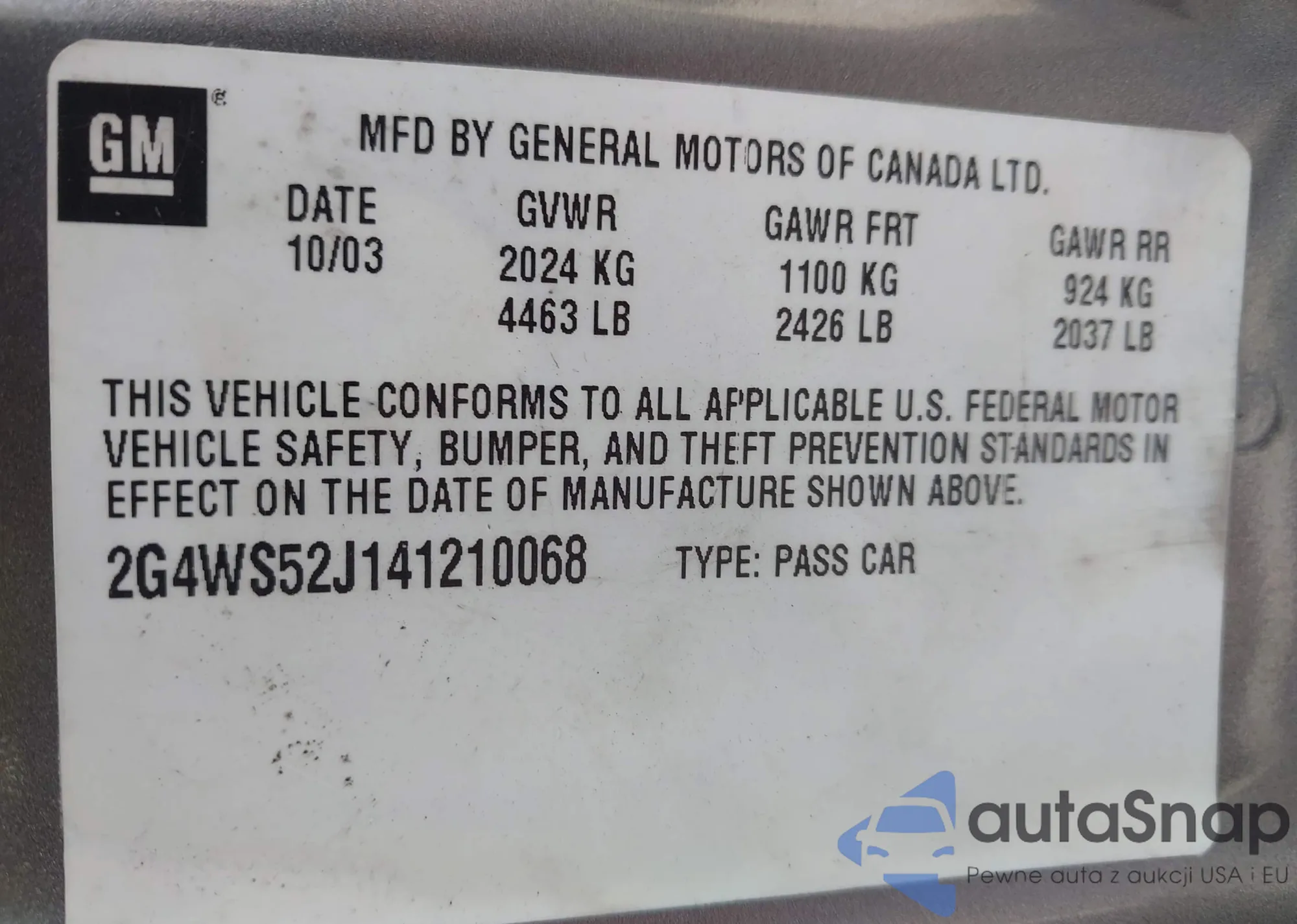 • VIN 2G4WS52J141210068