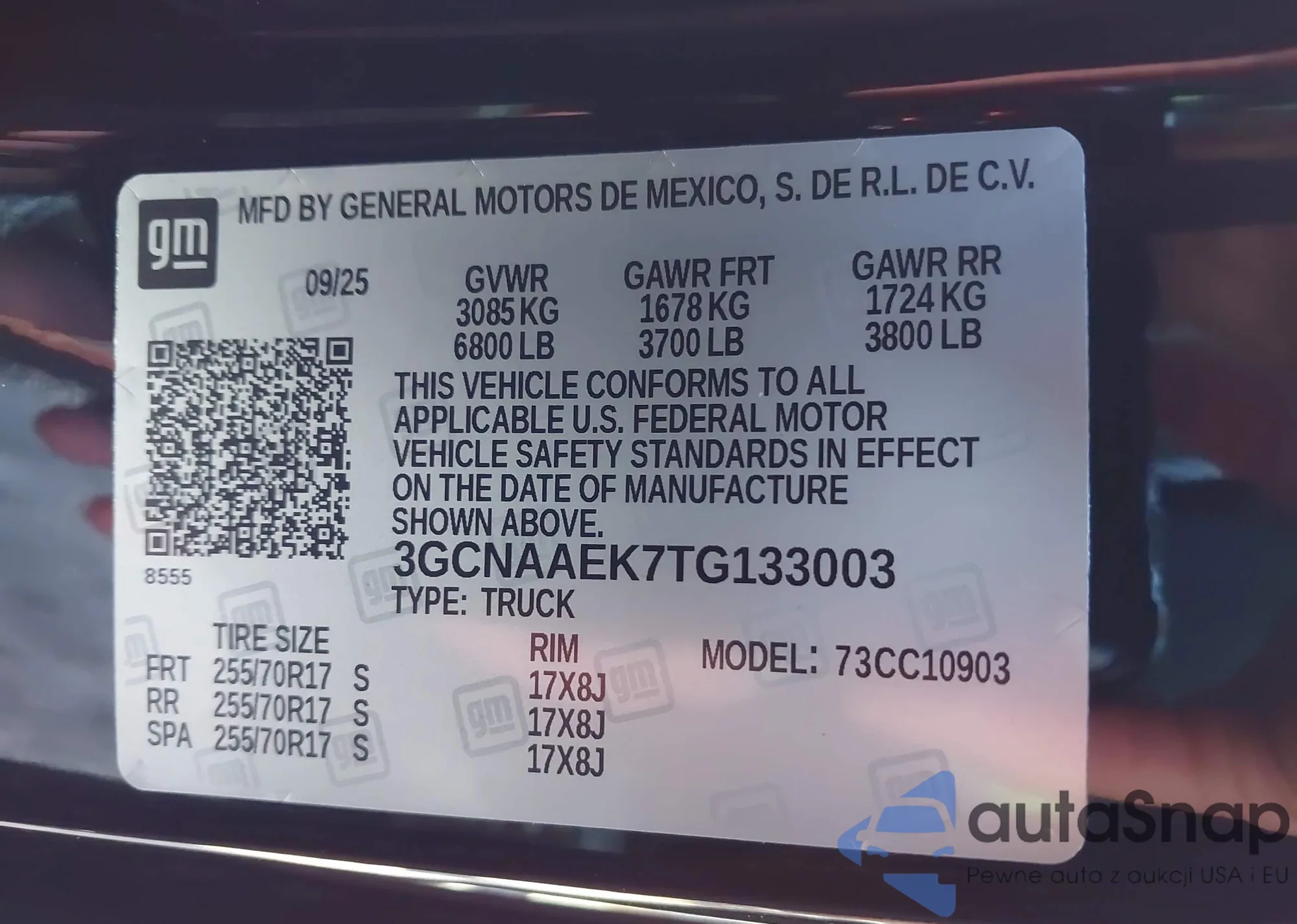 • VIN 3GCNAAEK7TG133003