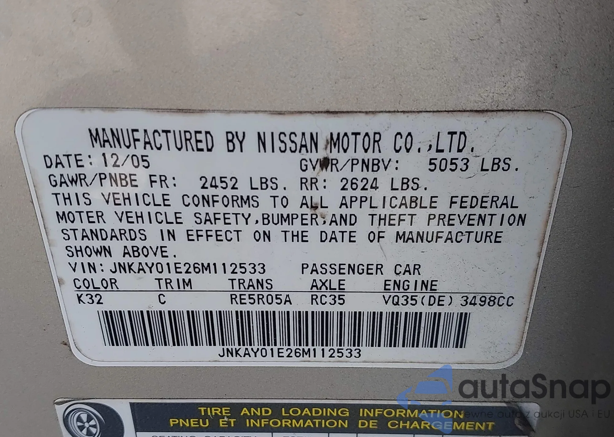 2006 Infiniti M35 z USA, uszkodzony, nr VIN JNKAY01E26M112533