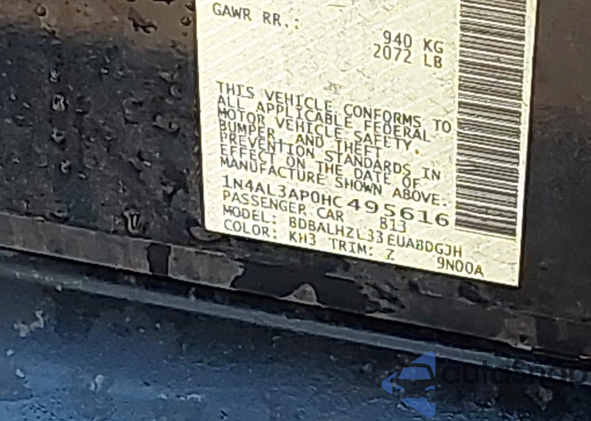 • VIN 1N4AL3AP0HC495616