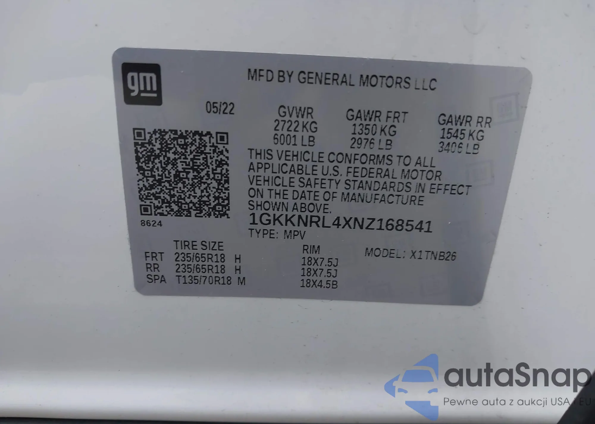 • VIN 1GKKNRL4XNZ168541