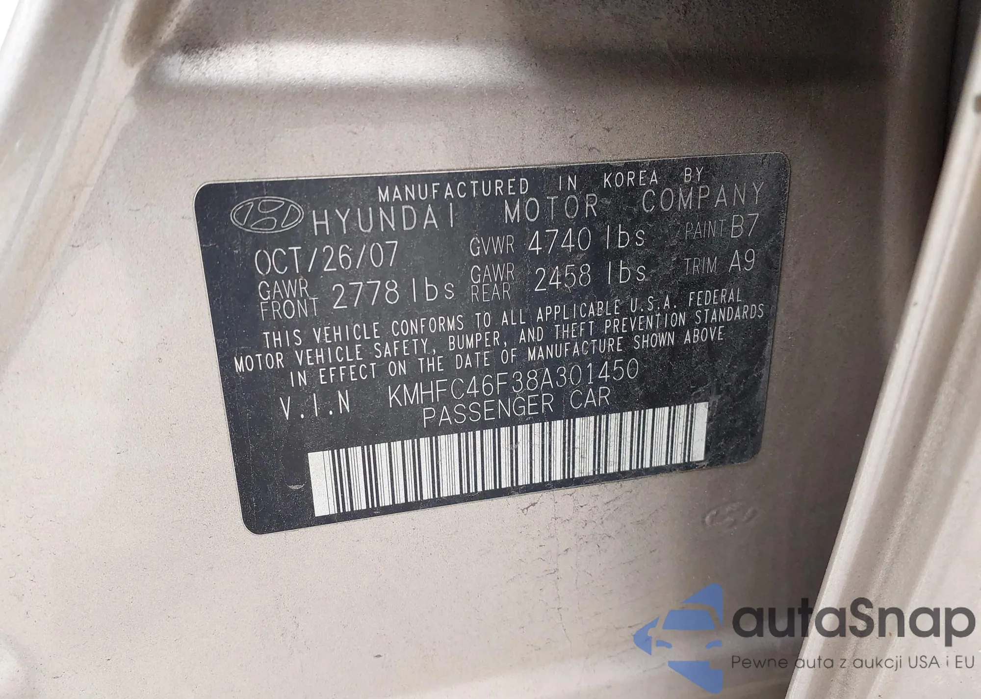 LOT: 43181696 VIN: KMHFC46F38A301450