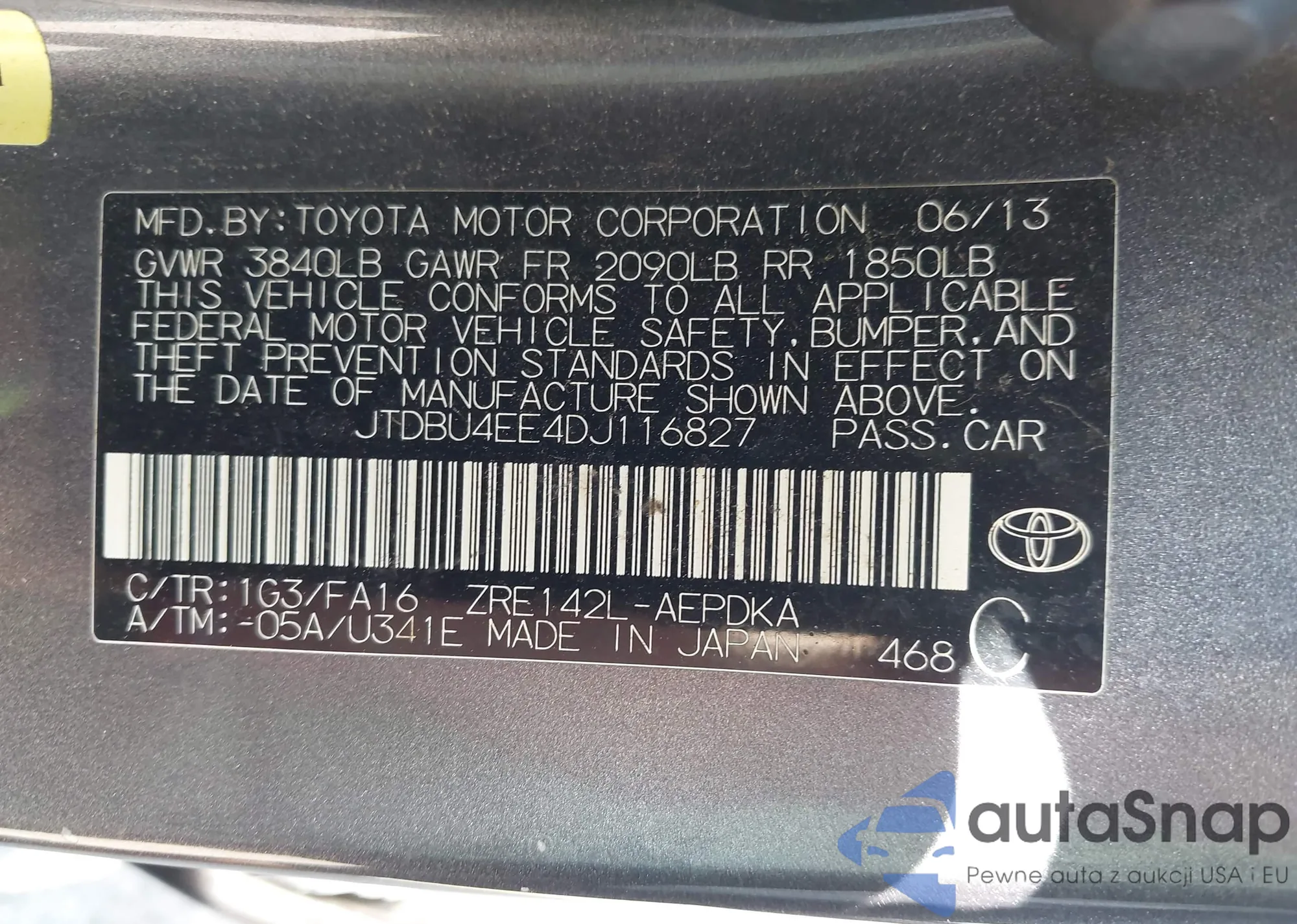 • VIN JTDBU4EE4DJ116827