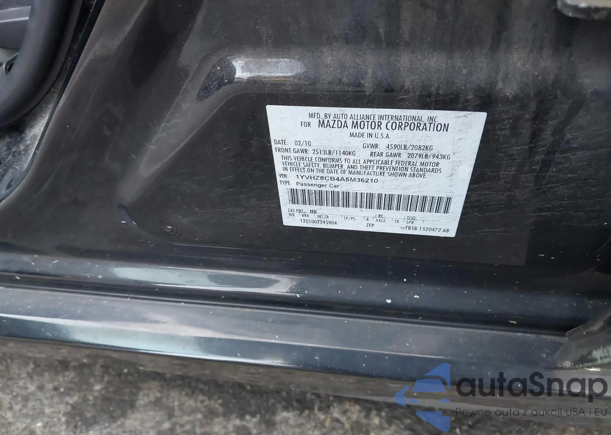 • VIN 2FMDK38C58BB31510