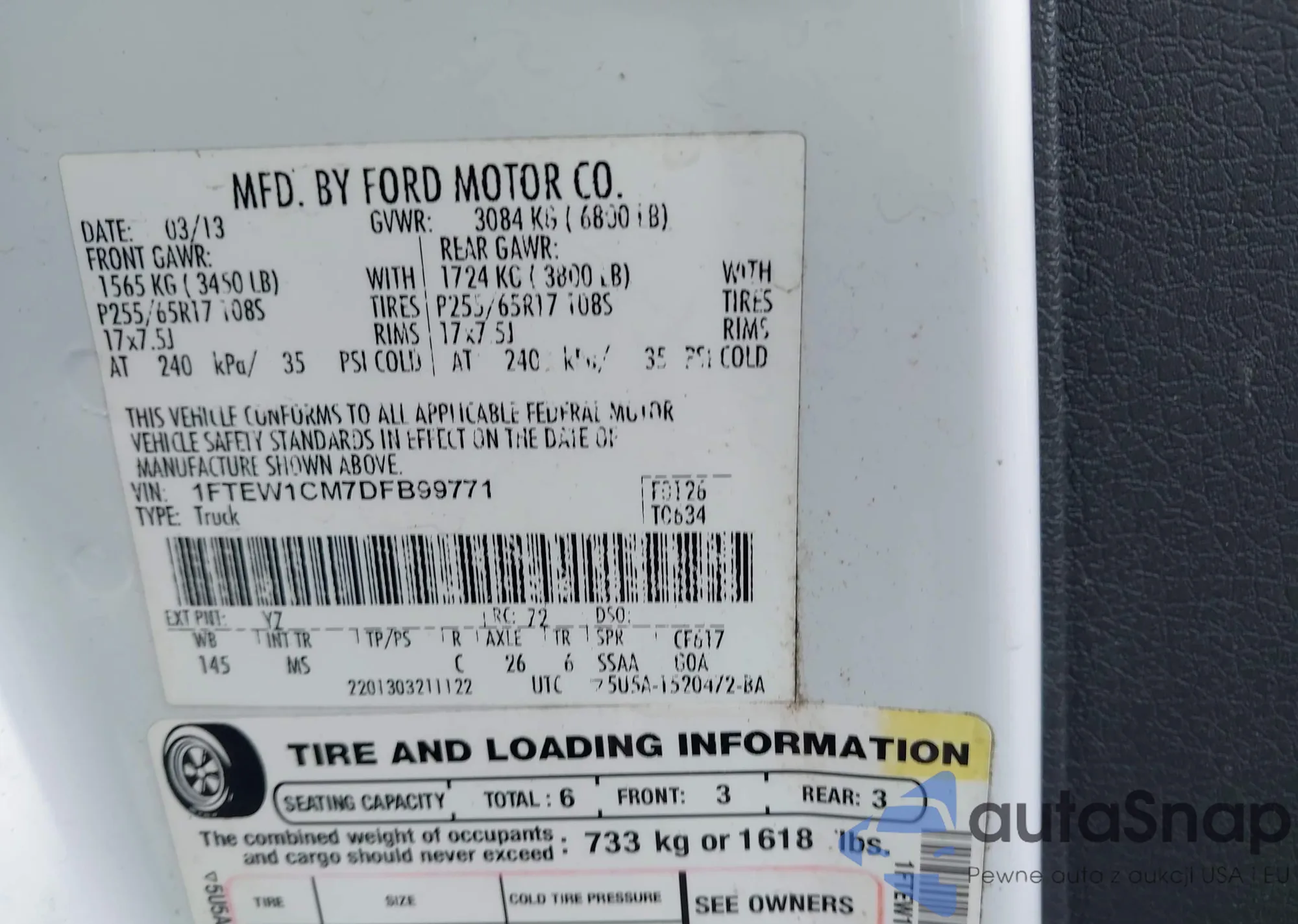 • VIN 1FTEW1CM7DFB99771