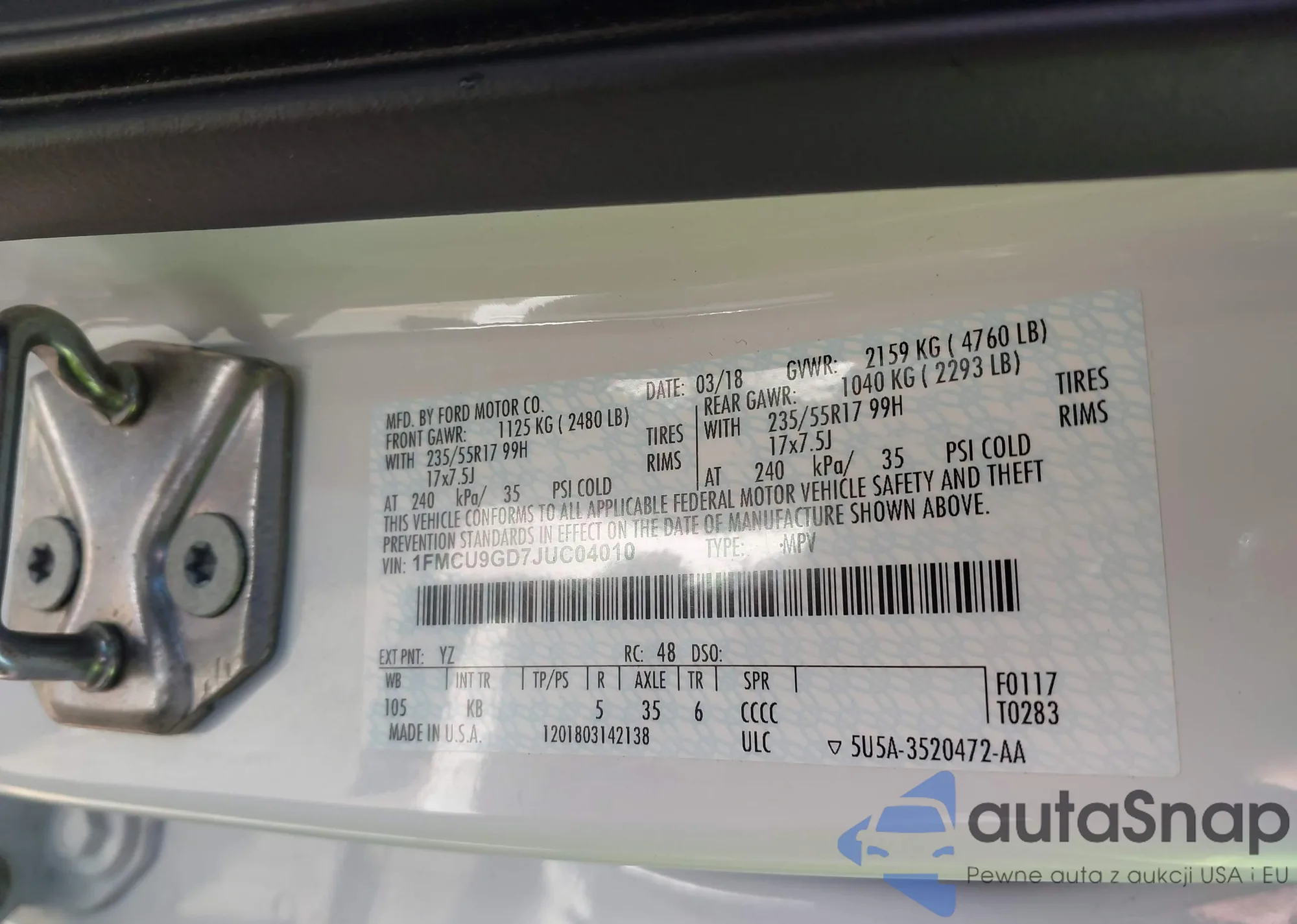 • VIN 1FMCU9GD7JUC04010