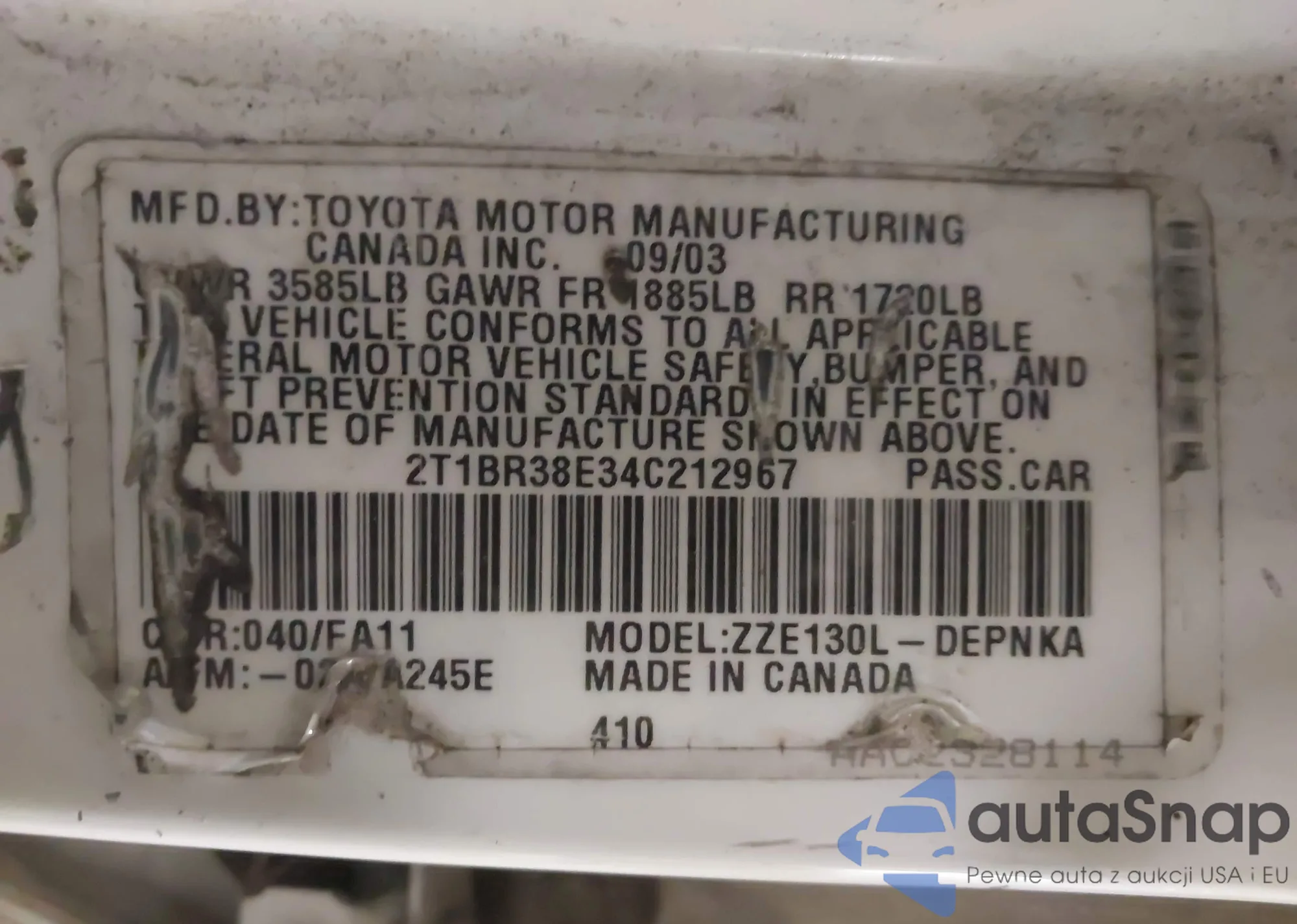 • VIN 2T1BR38E34C212967