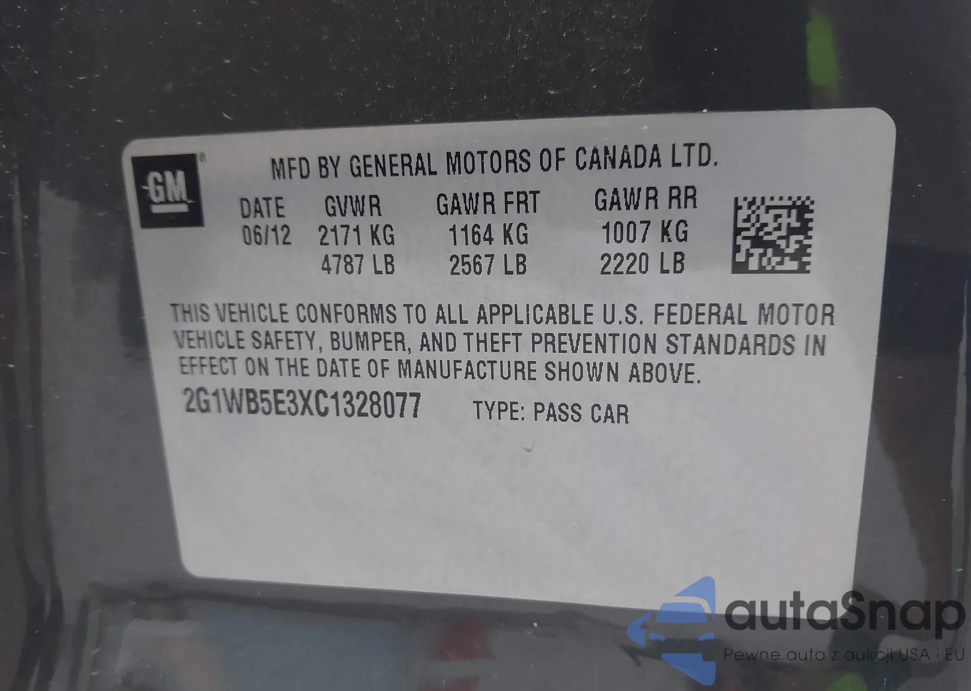 LOT: 42932180 VIN: 2G1WB5E3XC1328077