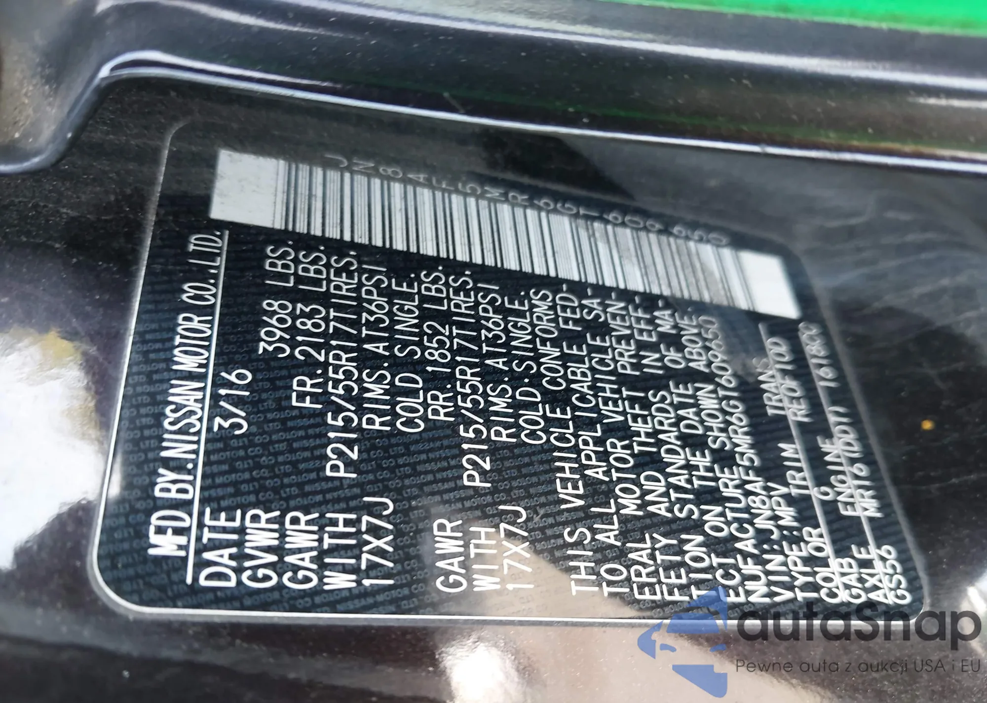 LOT: 43327806 VIN: JN8AF5MR6GT609650
