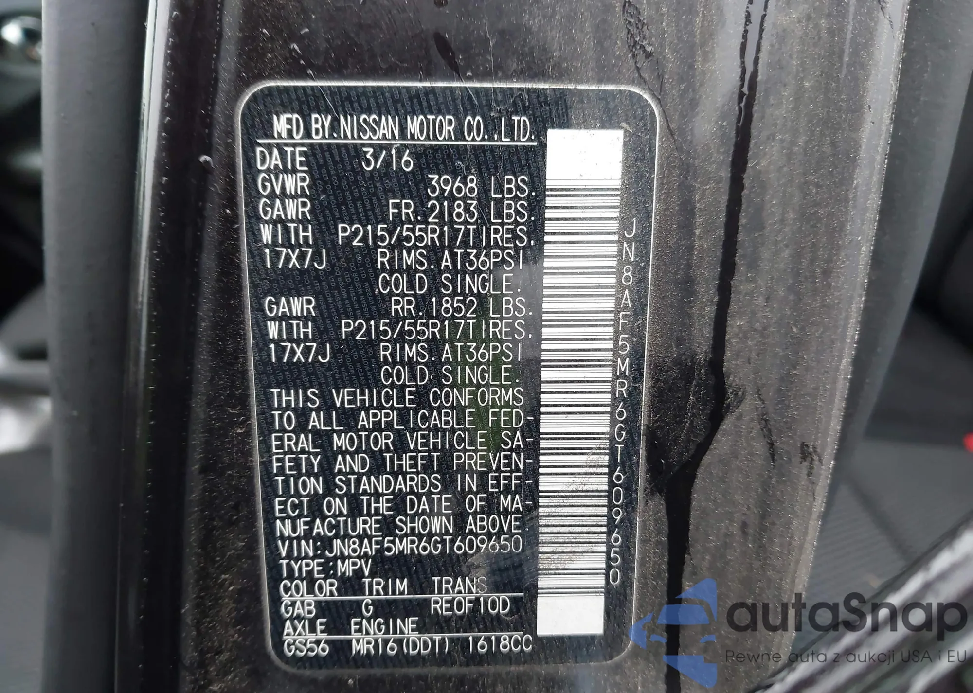 • VIN JN8AF5MR6GT609650