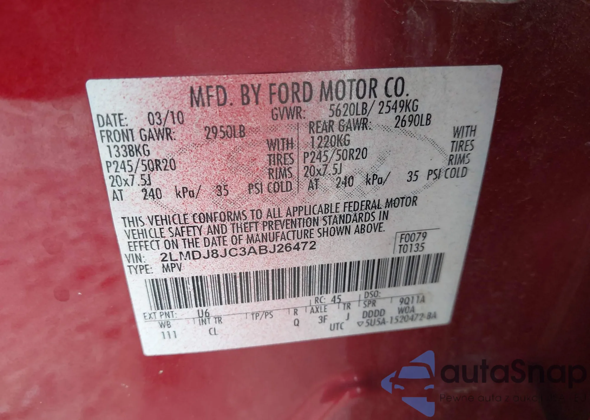 • VIN 2LMDJ8JC3ABJ26472