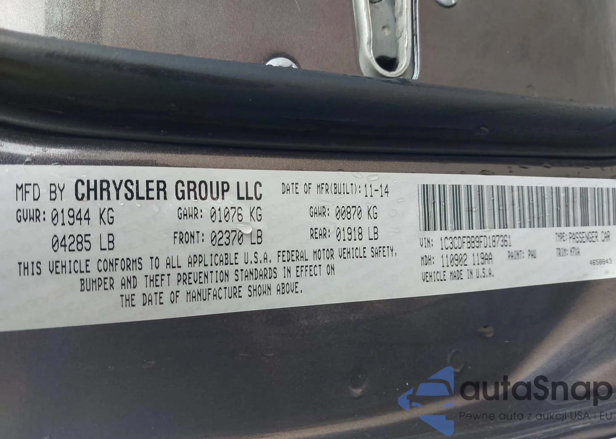 • VIN 1C3CDFBB9FD187361