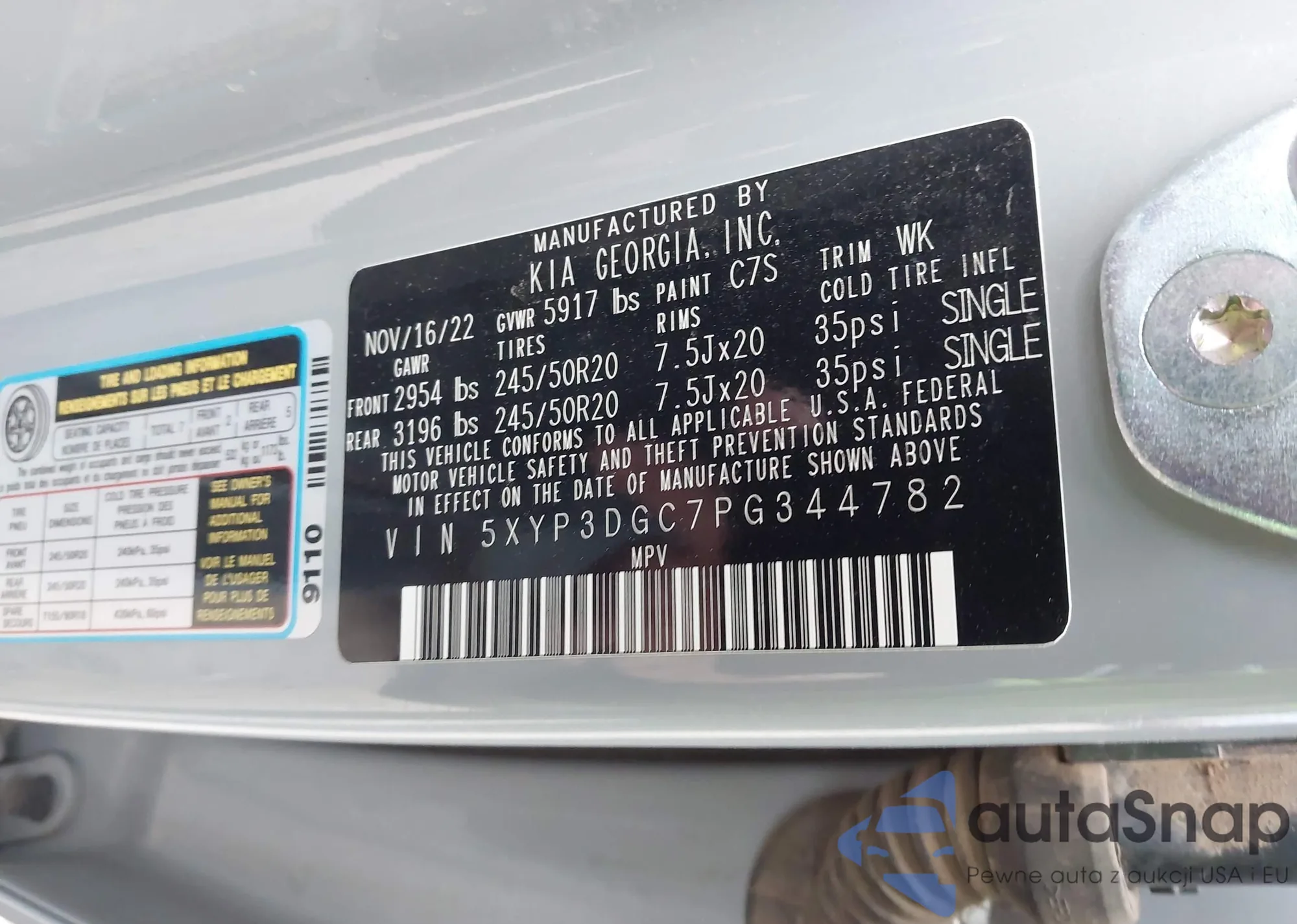 • VIN 5XYP3DGC7PG344782