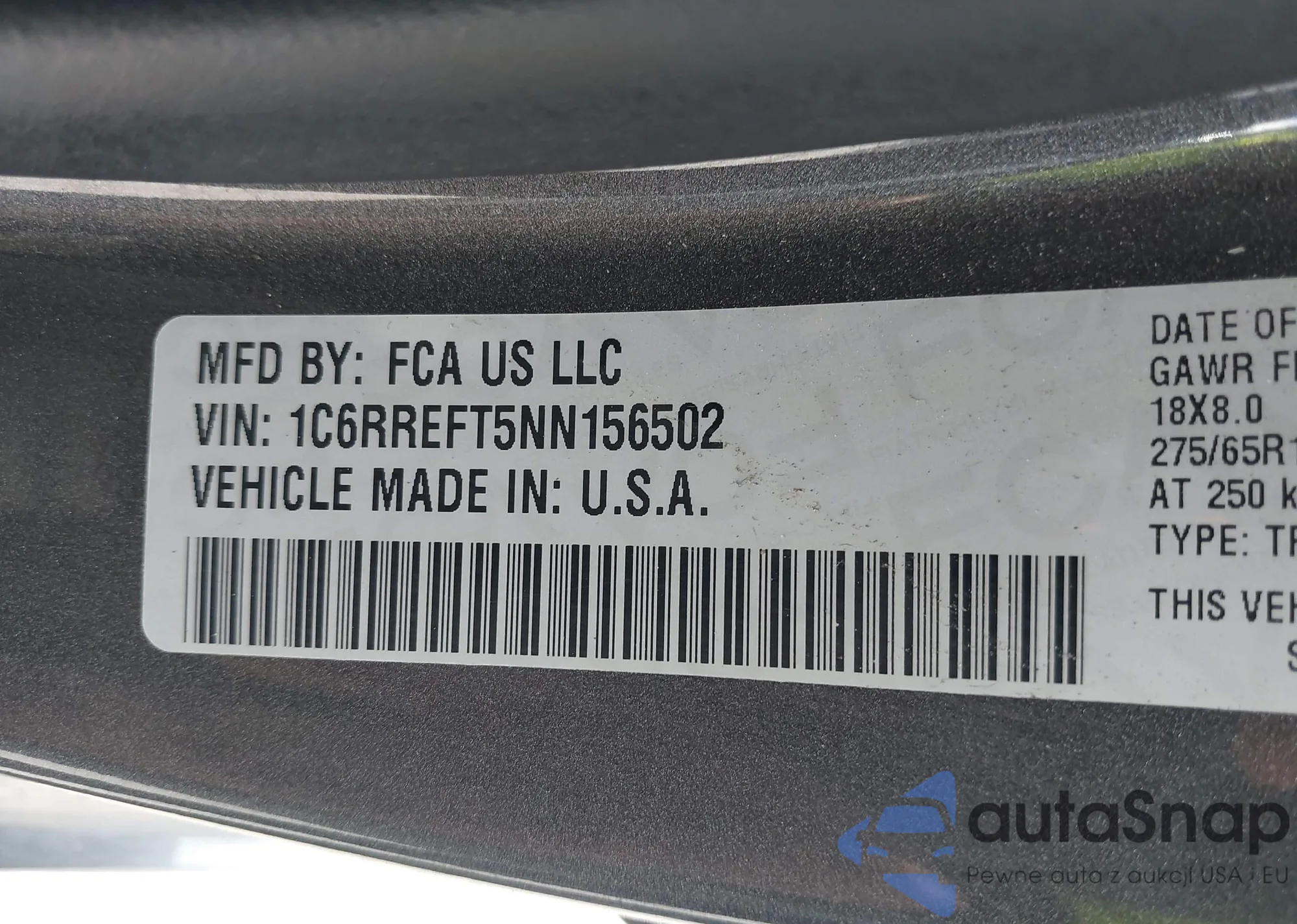 • VIN 1C6RREFT5NN156502