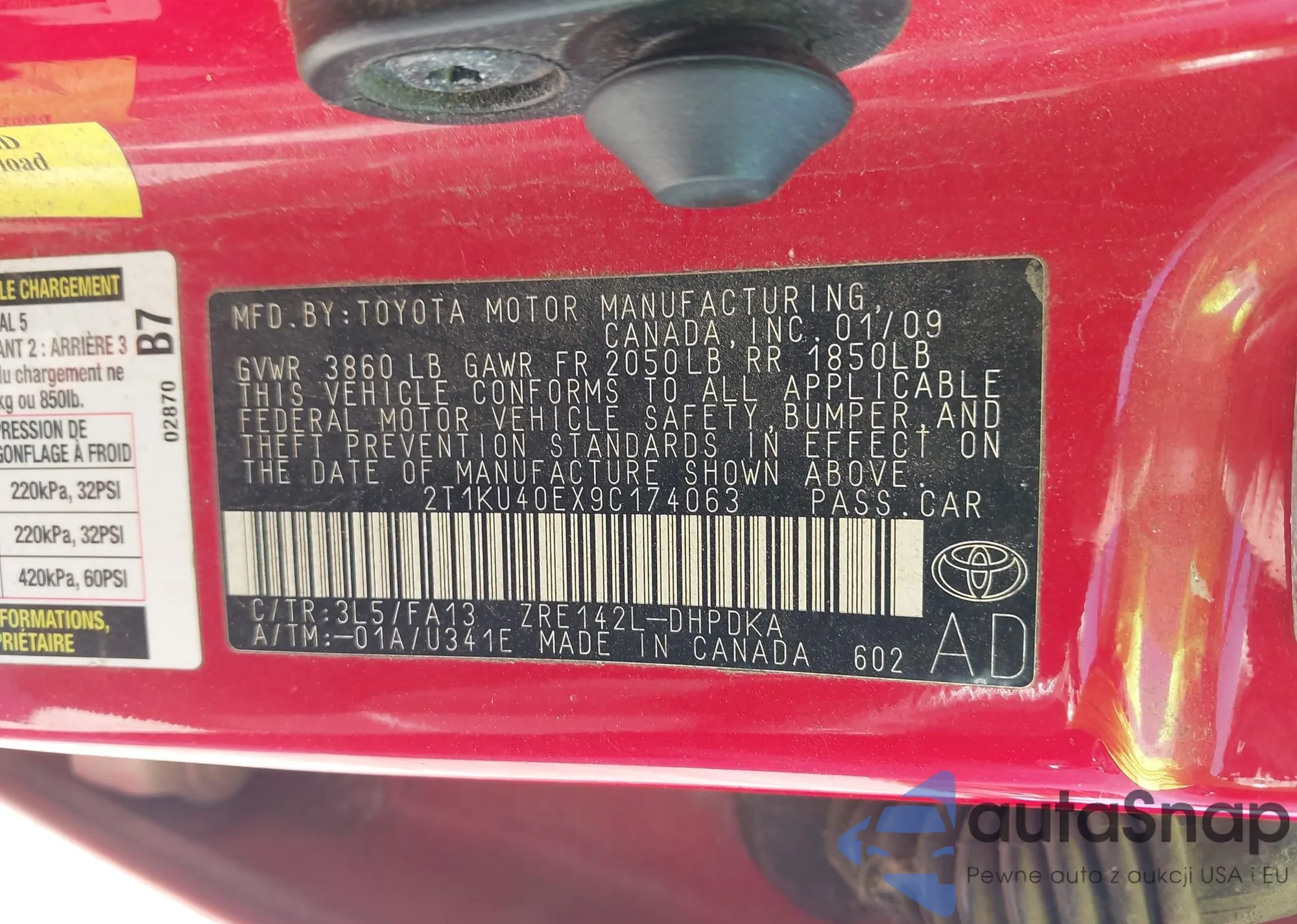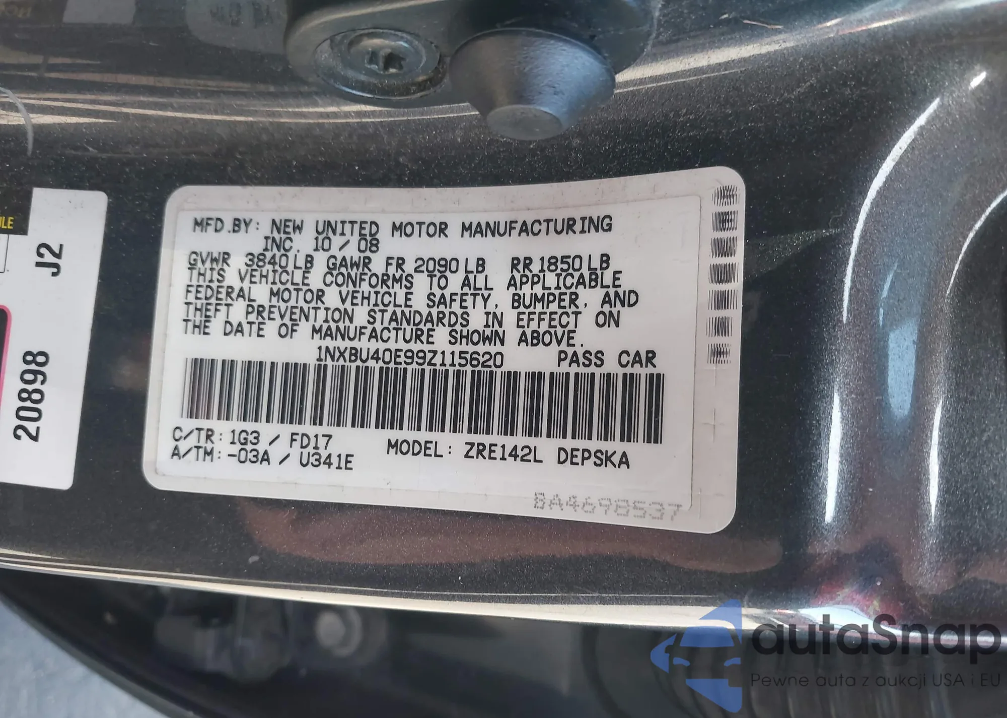 LOT: 43423329 VIN: 1NXBU40E99Z115620