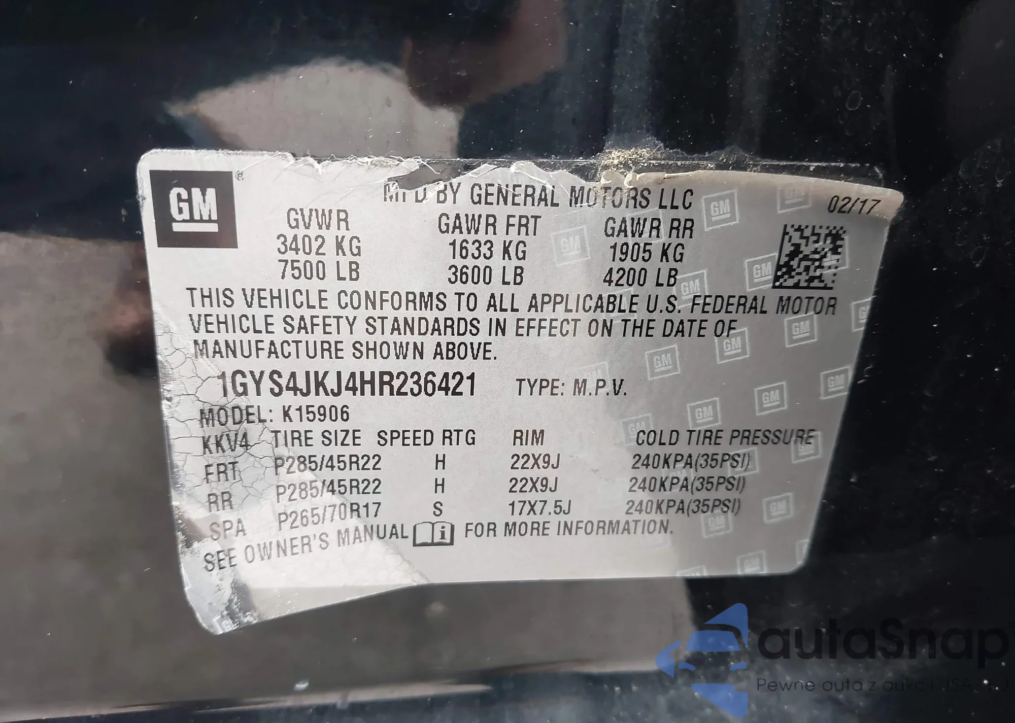 • VIN 1GYS4JKJ4HR236421