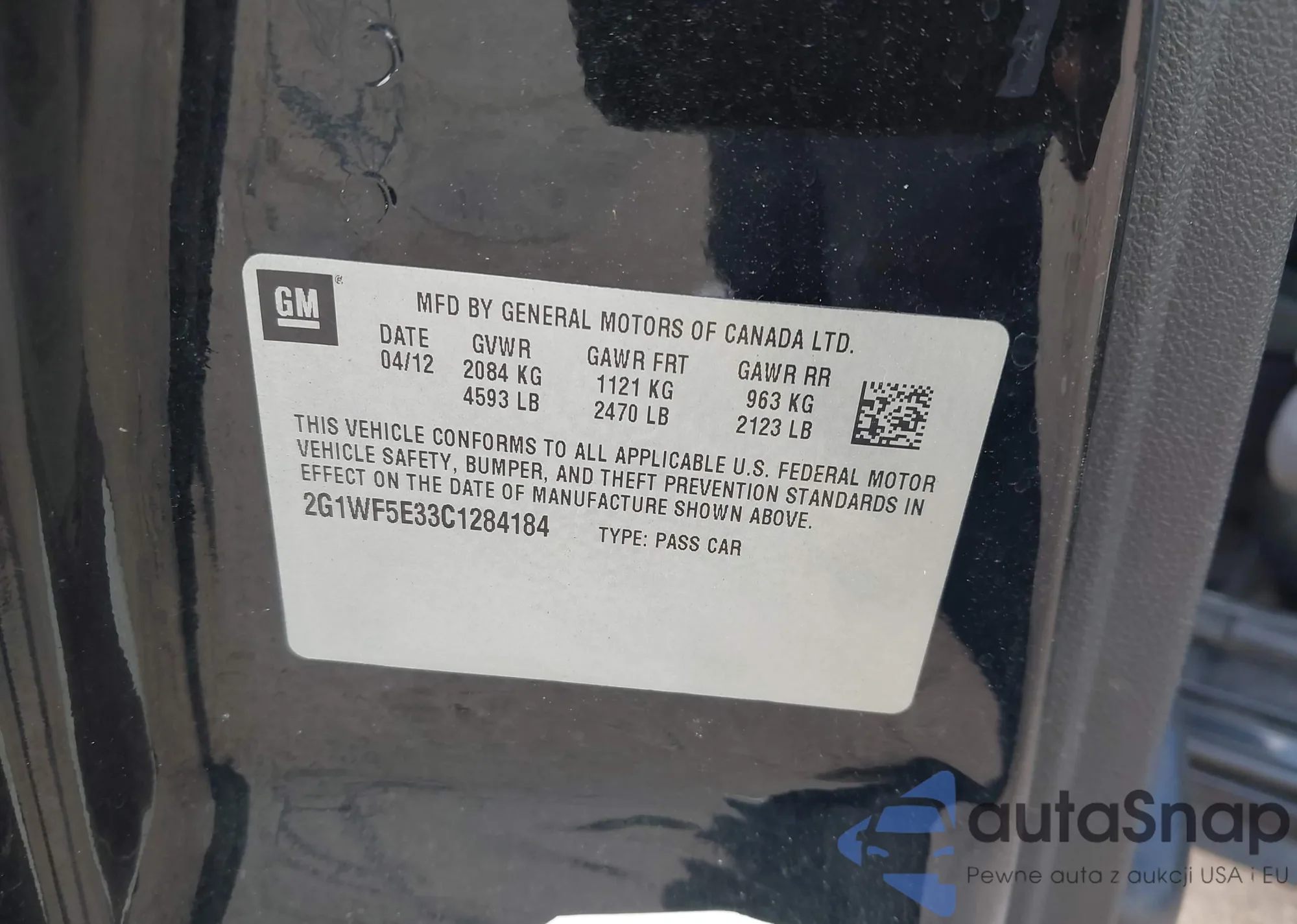 LOT: 43484821 VIN: 2G1WF5E33C1284184