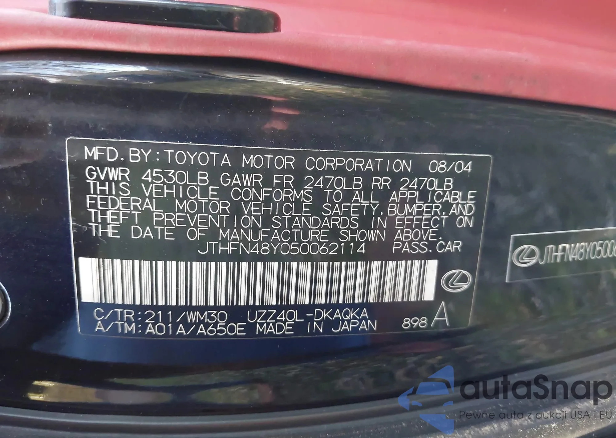 • VIN 5YFB4MDE1PP038833