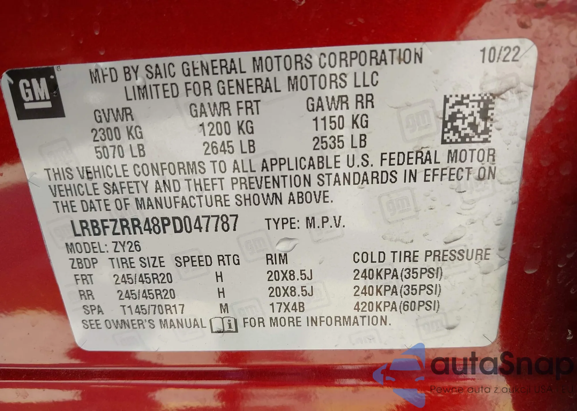 LOT: 43214397 VIN: LRBFZRR48PD047787