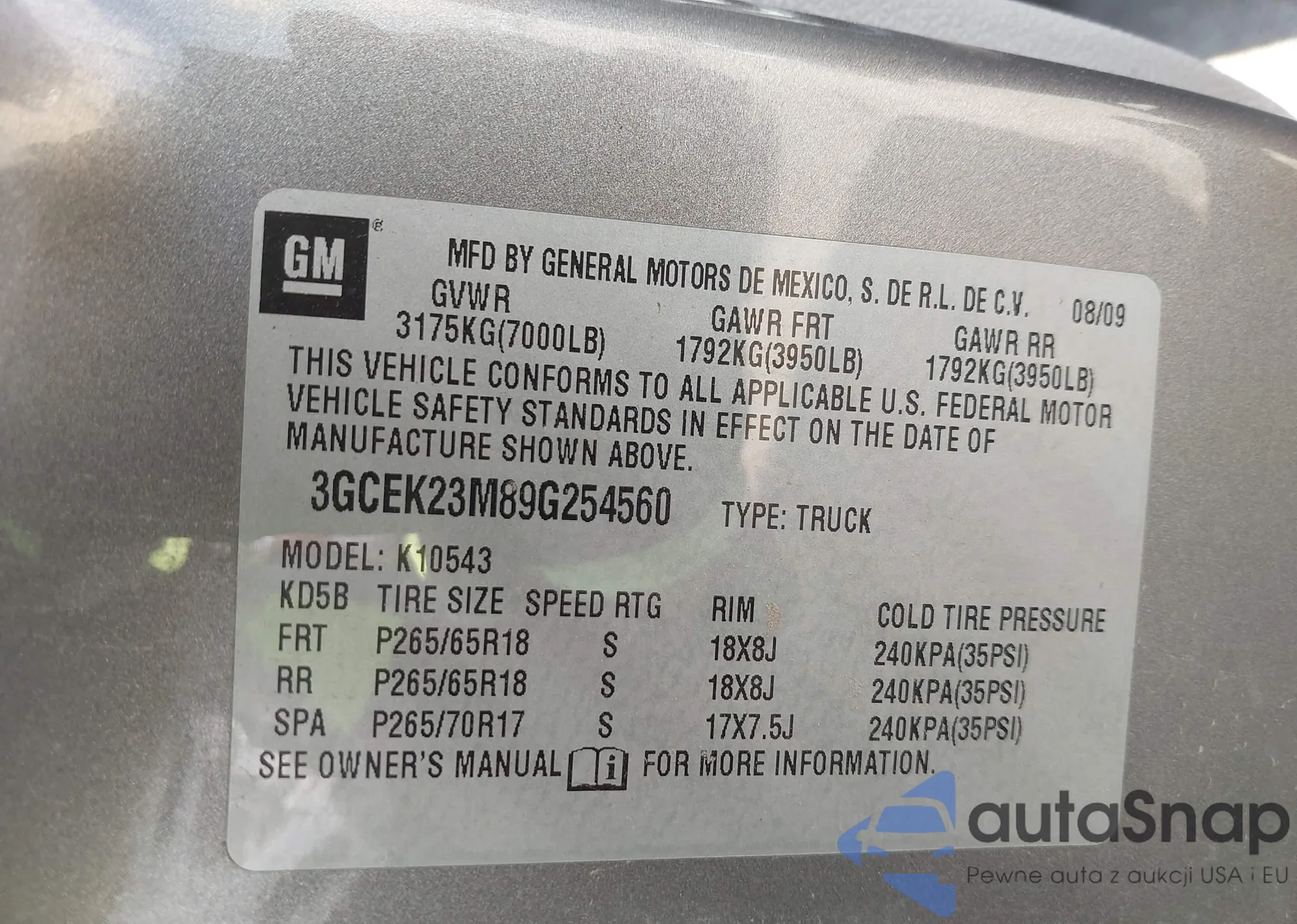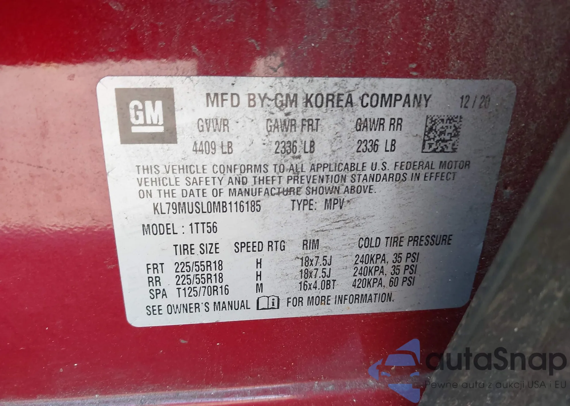 • VIN KL79MUSL0MB116185