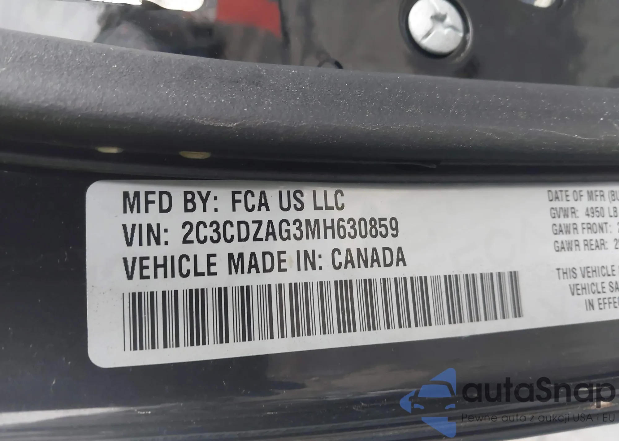 • VIN 2C3CDZAG3MH630859