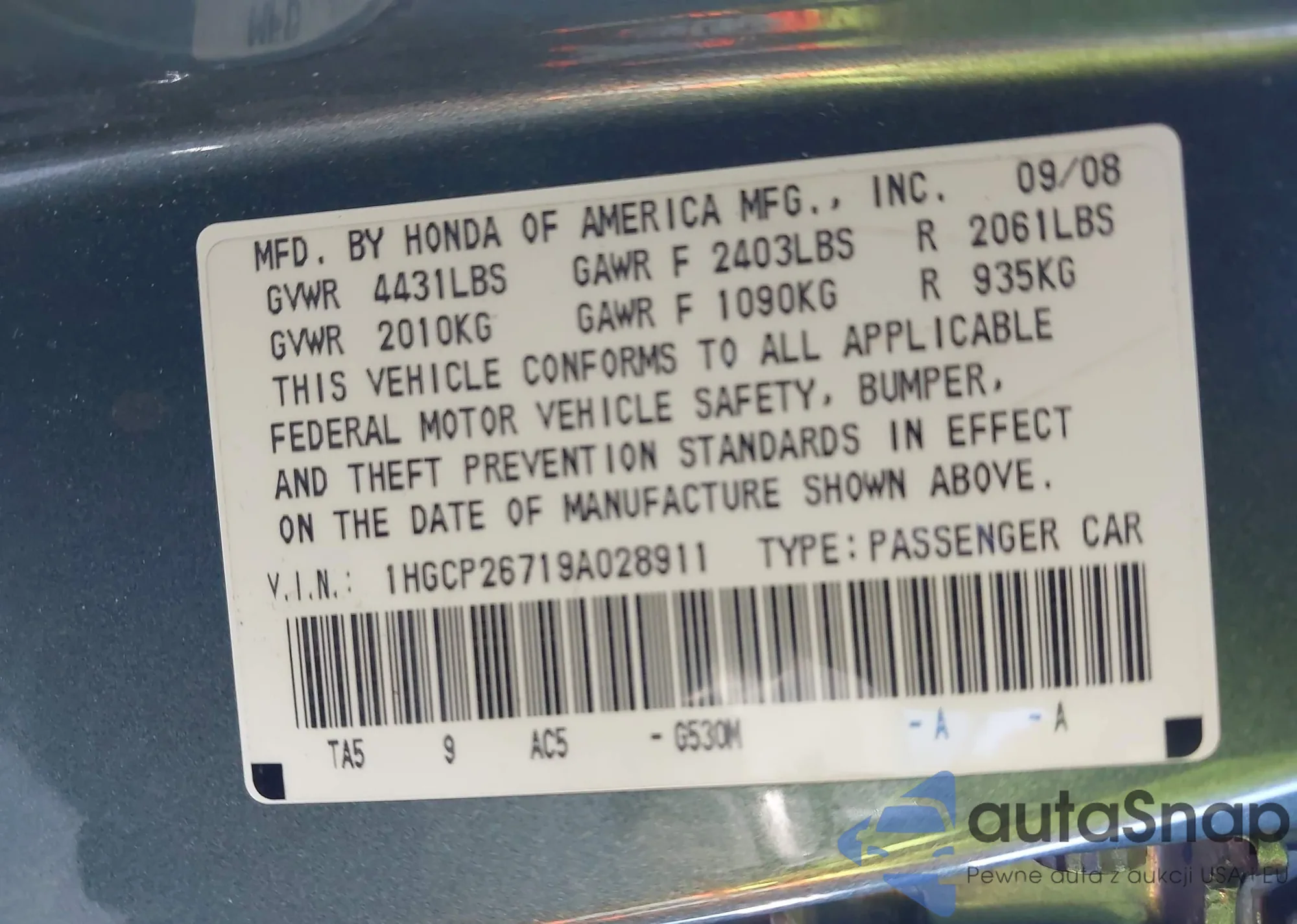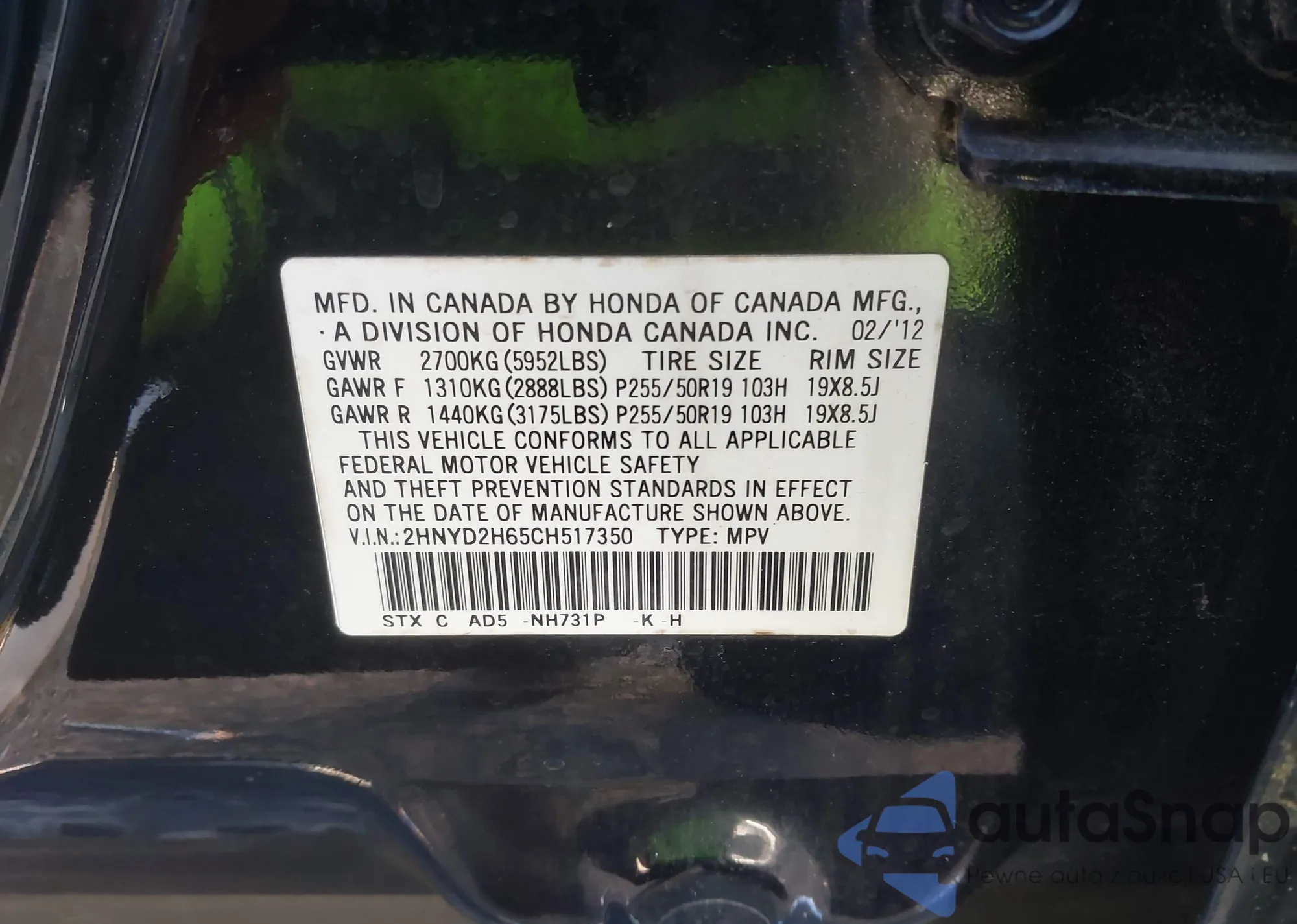 • VIN 2HNYD2H65CH517350