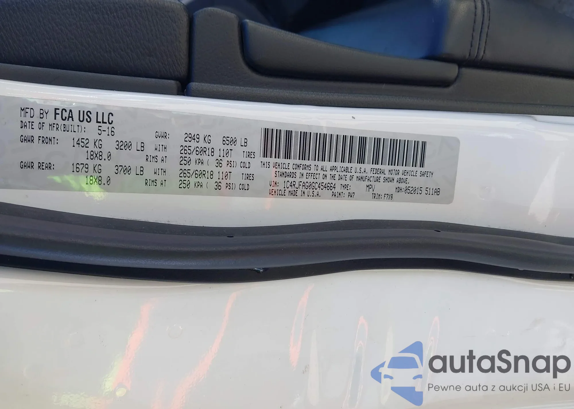 • VIN 1C4RJFAG0GC454664