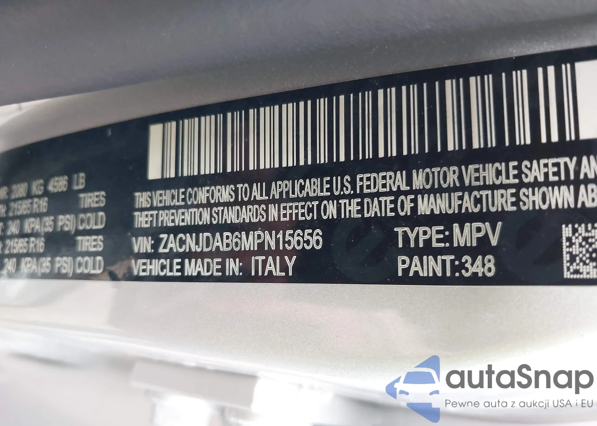 LOT: 42581580 VIN: ZACNJDAB6MPN15656