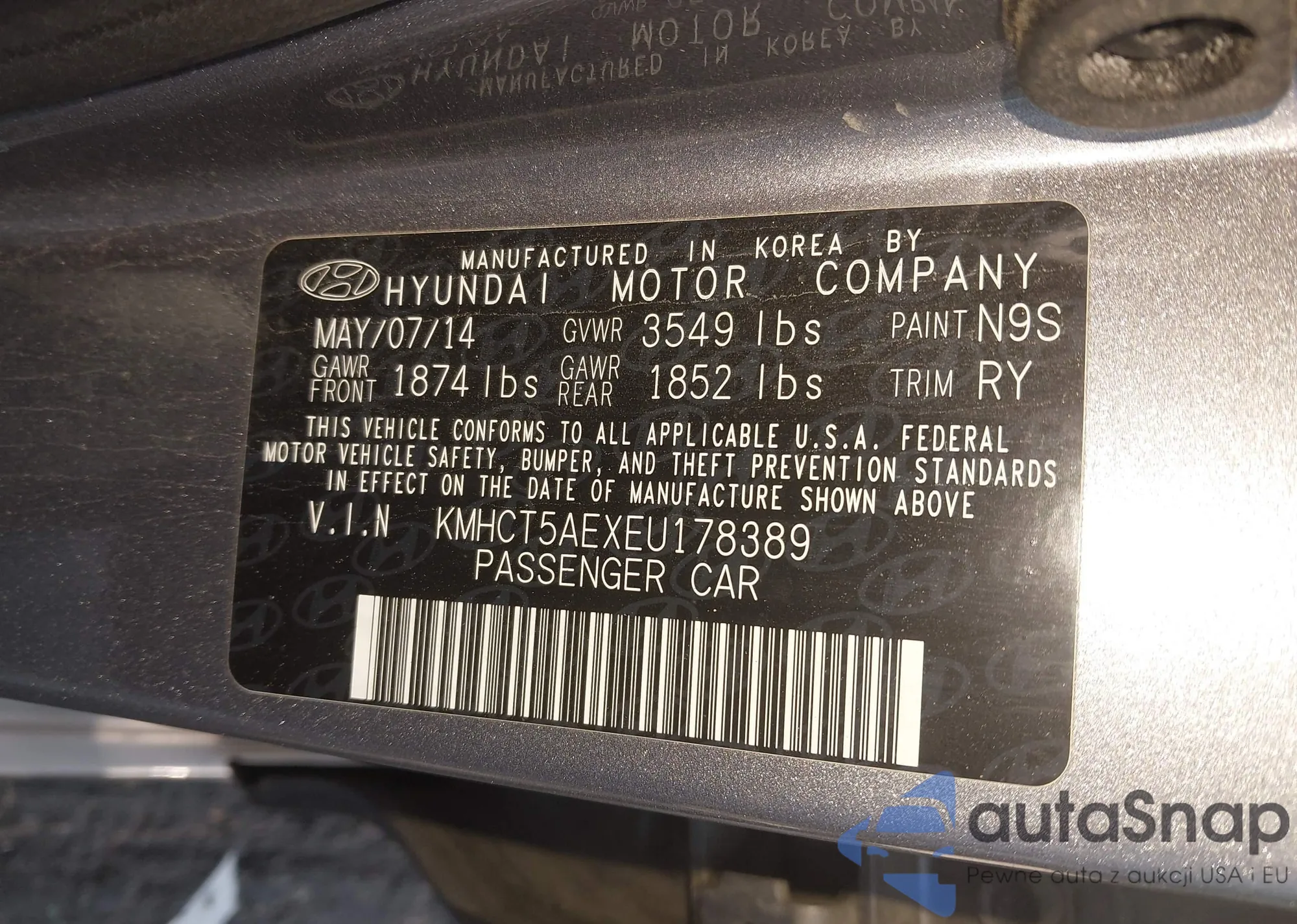 • VIN 5NMZU3LB9HH016381